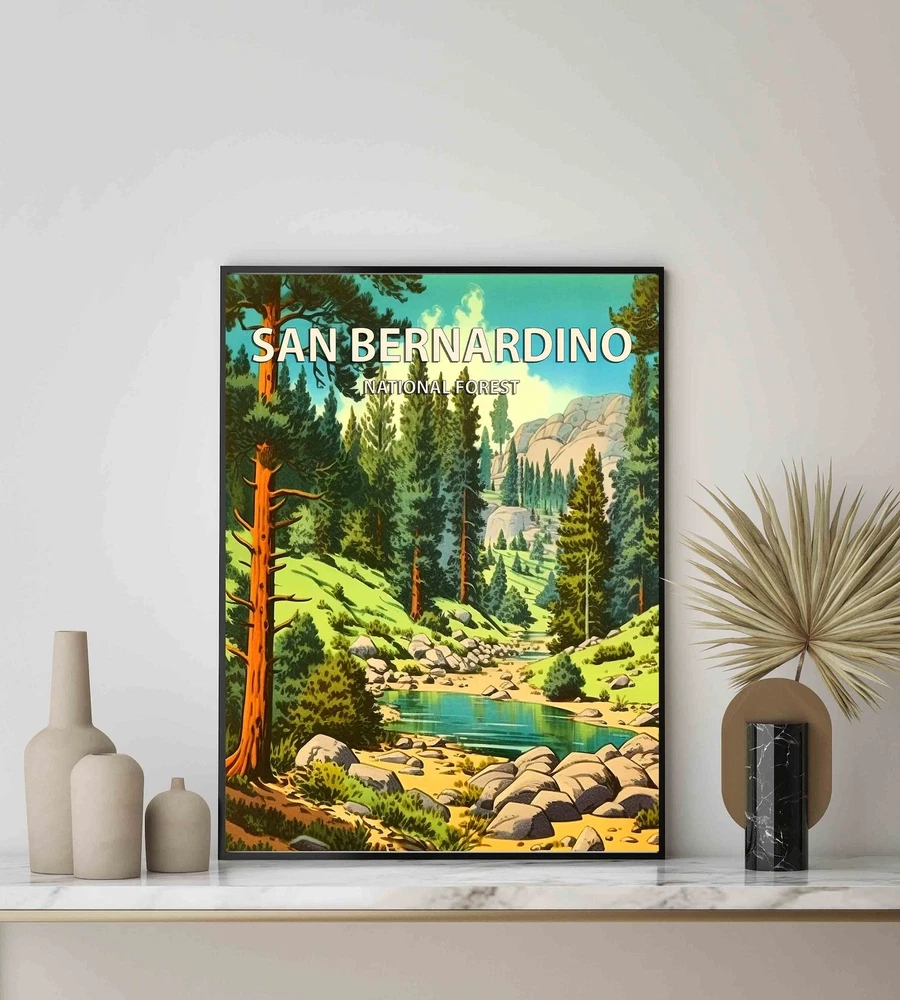 San Bernardino National Forest Poster Art Print Retro National Park Gifts Material: Premium luster photo paper Print type: Inkjet printing One side printed + The finish provides the highest possible resolution and color saturation + Lasts up to 200 years in color and 400 years in black-and-white + Printed on high-quality resin-coated photo base paper medium + Posters can be hung with double-sided tape, tacks, or framed + Hand washing with a gentle cry cloth is recommended for extended durability I will hand select the best choice of paper for your chosen design to ensure top quality results for a beautiful, bright and luxurious print. All prints are sealed in cellophane slips for protection during transportation, and are shipped in a protective cardboard envelope.