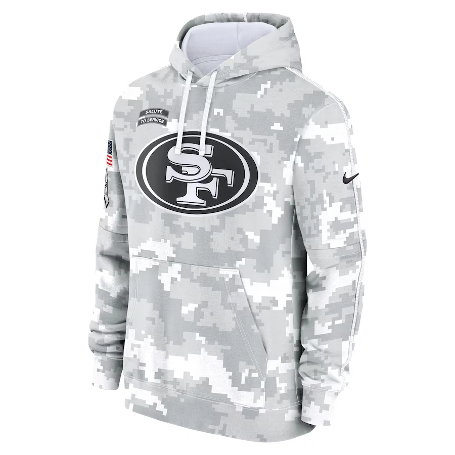 San Francisco 49ers 2024 Salute Service Club Fleece Pullover Hoodie Arctic Camo