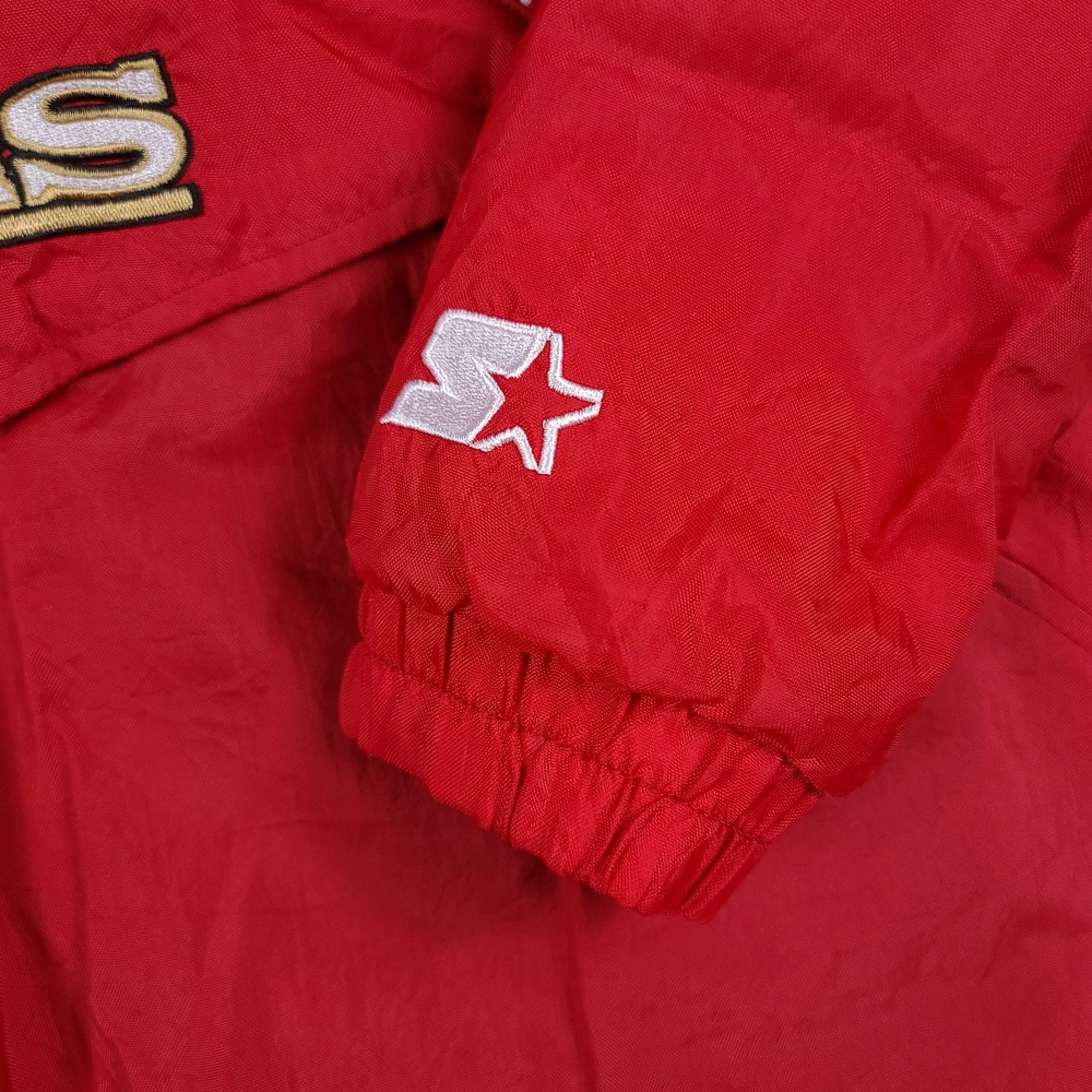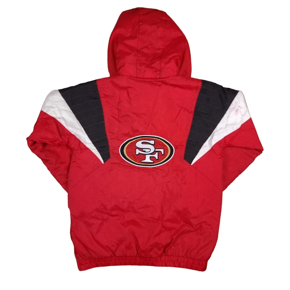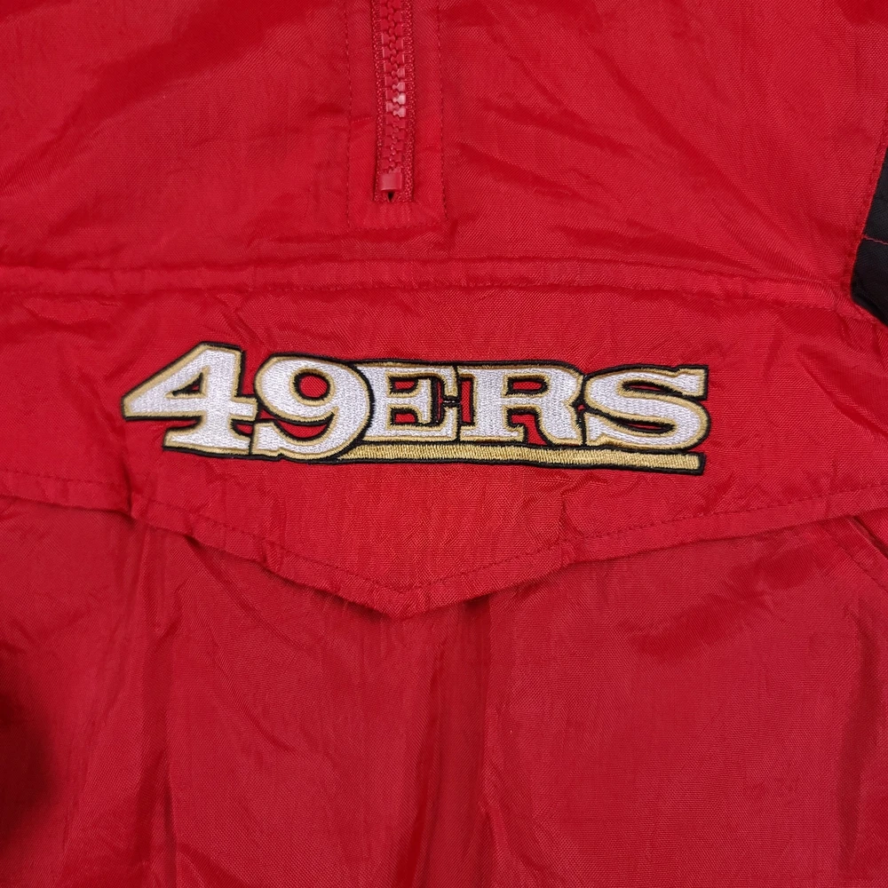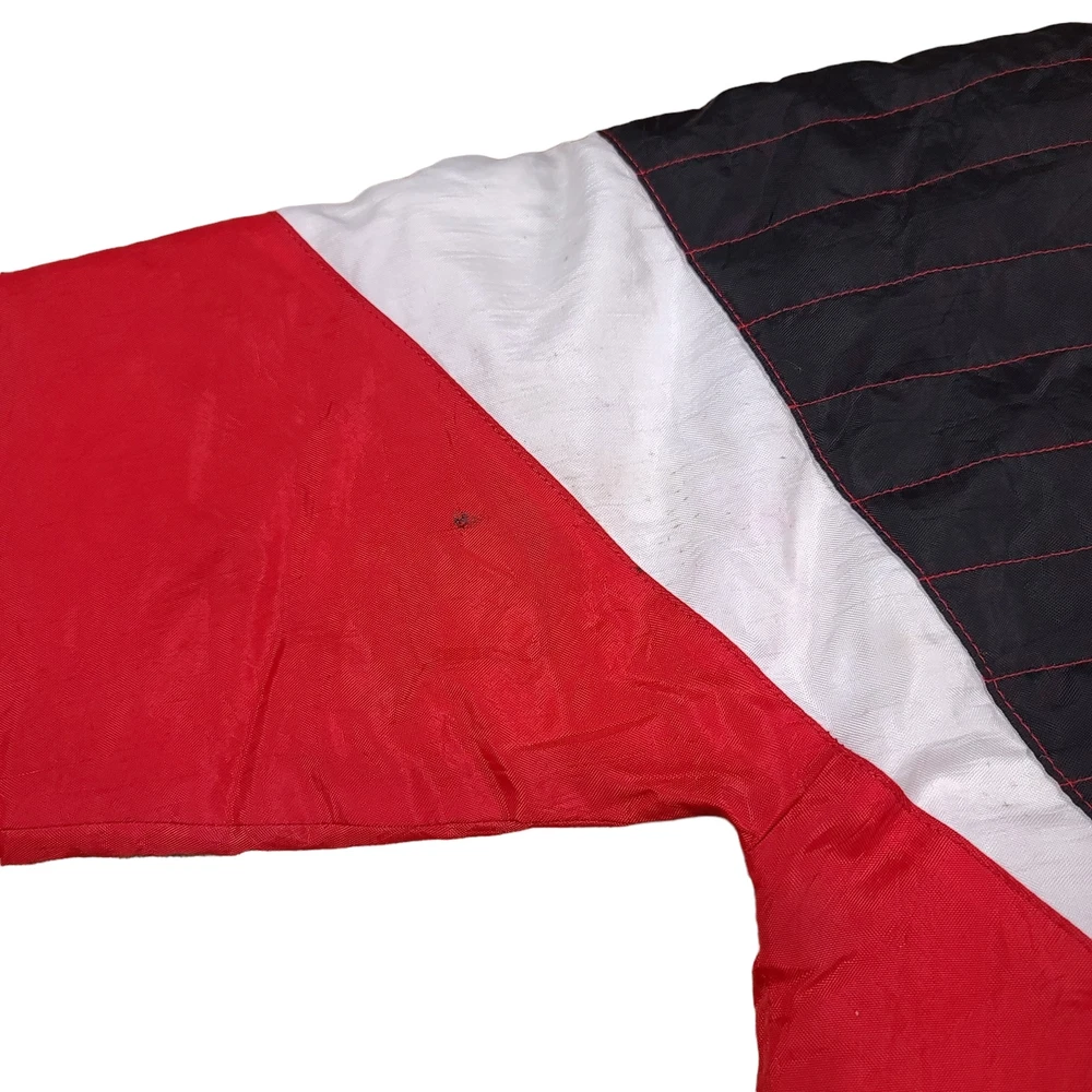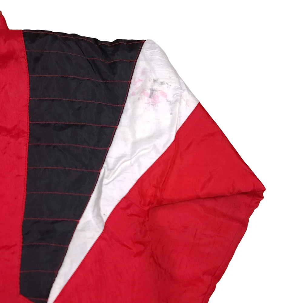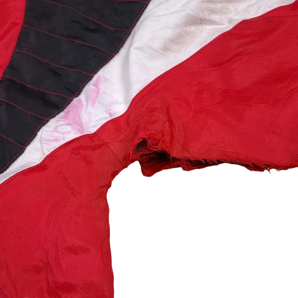 There are stains on the front and armsleeves. There are holes on the the front and left arm sleeve where the stitching has become undone. Tagged Size Youth Large Measurements Pit to Pit: 20 Inches Length: 25.5 Inches Pit to Sleeve: 16.5 Inches