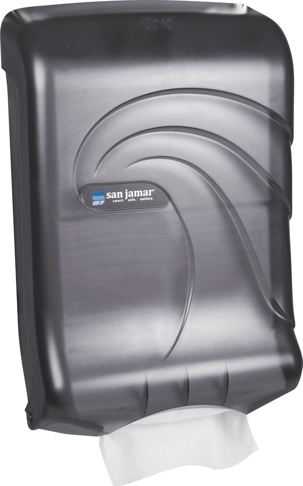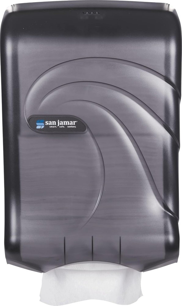 The San Jamar Oceans Large-Capacity Ultrafold Paper Towel Dispenser, model T1790TBK, is a high-quality unit designed for use in business and industrial settings. Made in the United States, this paper towel dispenser offers a large capacity and ultraflexible folds for convenient tear-off. With the trusted San Jamar brand, you can rely on this dispenser to efficiently and effectively dispense paper towels in your bathroom or break room. Ideal for maintaining cleanliness and hygiene in a variety of commercial establishments.