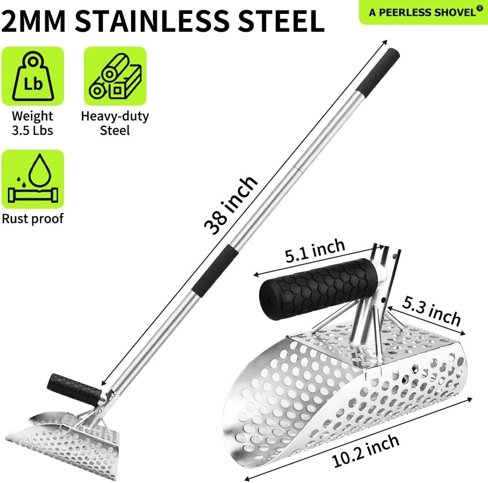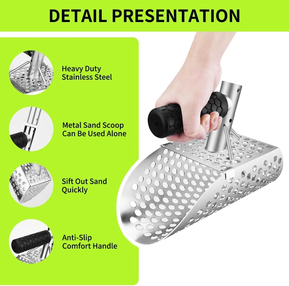 Store New Arrivals Add to Favorite View Feedback Contact Sand Scoop for Metal Detecting,Heavy Duty Metal Detector Scoop with Long Handle,Metal Detector Accessories, Beach Metal Detecting Sand Shovel,Stainless Steel Sand Scoop for Underwater Treasure Hunting Description Item model number shovel002 Item dimensions L x W x H 11.3 x 6.34 x 4.33 inches Color silvery Brand A peerless shovel Material Stainless Steel Country of Origin China Style Sand Scoop with Stainless Steel Handle Grip Type Ergonomic Item Weight 1.78 Kilograms Handle Material Stainless Steel Is Foldable No Blade Material Stainless Steel Product Dimensions 11.3 x 6.34 x 4.33 inches Manufacturer A peerless shovel High quality materials: The sand flea rake for beach is made of solid stainless steel, which is rust proof, anti-corrosion, and wear-resistant, with extraordinary durability, achieving long-term stable use. Efficient screening: Our sand scoops for beach metal detecting has high-density body pores and is an essential tool for screening sand. This sand shovel adopts high-quality craftsmanship and comes with an anti slip handle, making it easy to operate during your treasure hunt. Beautiful appearance: The metal detector shovel for beach metal detecting adopts a simple and elegant line design, with a beautiful appearance, making it an indispensable exploration tool for outdoor play. Effortless design: The supporting handle design of the metal detecting sand scoop conforms to ergonomics, providing a comfortable grip and preventing it from falling off easily. Save time and energy on your treasure hunt journey. Convenient to use: The size of the sand scoop for metal detecting is moderate, making it easy for you to put in your backpack. After reaching the destination, simply scoop the sand into the sand shovel, then gently shake it left and right to filter out the sand. Multi scenario application: Professional metal detector scoop increase your chances of discovering coins, silver, jewelry, and gold. It has a wide range of application functions in places such as beaches, underwater, lawns, or soil, suitable for professional explorers, beginners, and vacationers. Product Description ABOUT US We offer the best prices around on high quality products. Our E-store includes media such as books, movies, music and games while offering electronics, toys, sporting apparel, clothing, tools, general home, garden items and more. SHIPPING We are always working hard to ensure your package arrives as soon as possible. Please understand that some factors like weather, high postal traffic, and the performance of shipping companies are outside of our control. We offer free shipping to the lower 48 states and ship within 2 business days of payment, usually sooner. We do not accept P.O. Boxes. Please provide a physical address. RETURNS We offer a 30-Day Return Policy on items which you are not completely satisfied with. You have the option for a full-refund or an exchange of the item. No returns are available on items shipped outside of the USA. PAYMENT We accept PayPal. CONTACT US This page content is yet to come Please ad us to your favorite seller and visit again later Thank You CUSTOMER SATISFACTION We try our very best to make sure every customer is completely satisfied. If there's a problem, message us! We're happy to help.