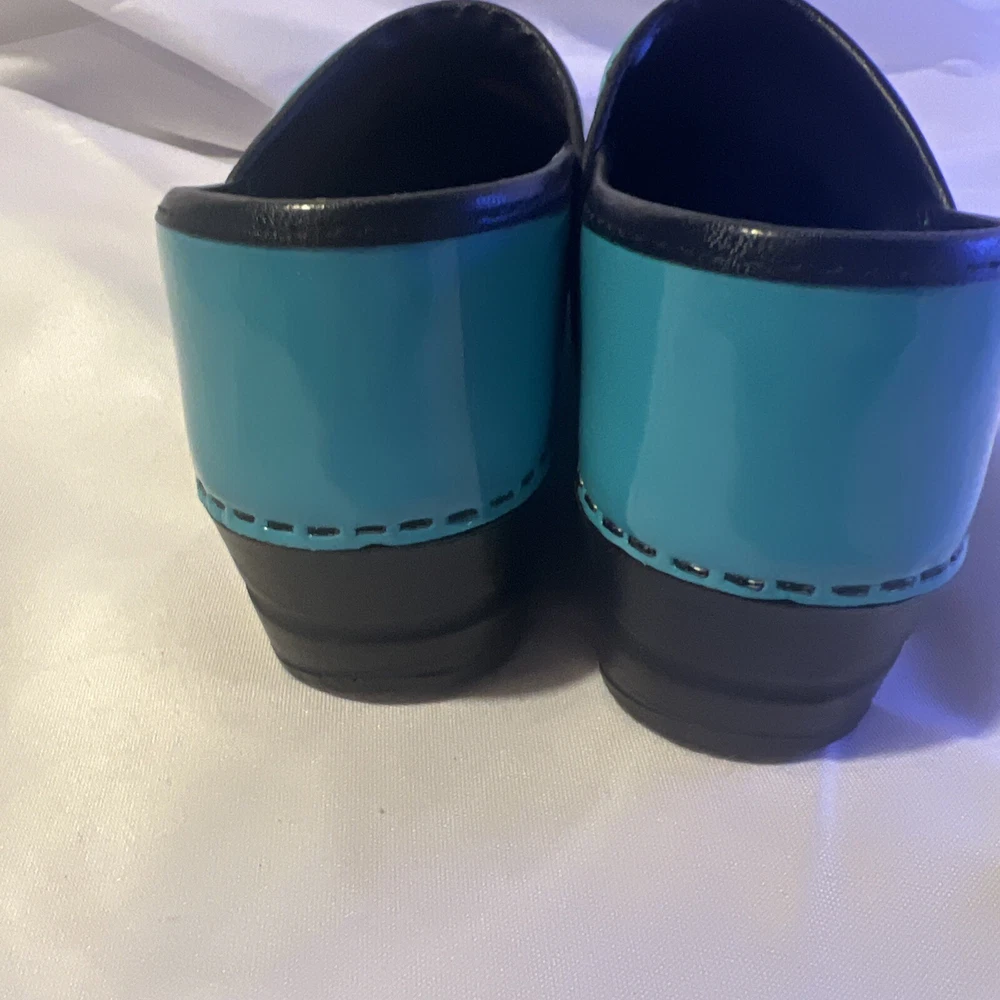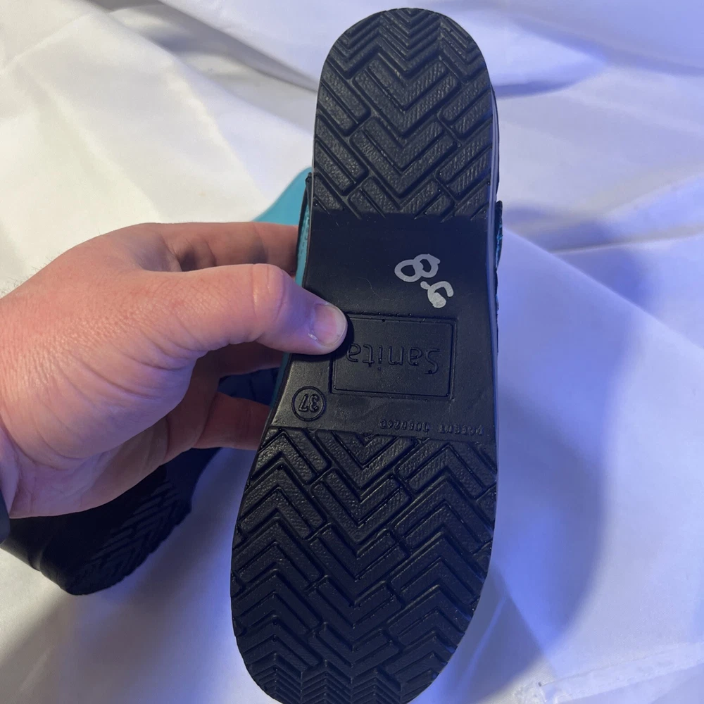 Slip into comfort with these Sanita clogs, designed with both style and ease in mind. The turquoise slip-on clogs feature a classic geometric pattern that adds a pop of color to your workwear ensemble, while the durable rubber outsole provides stable traction for all-day wear. With a size 6.5 US (37 EU), these clogs are tailored for a snug and comfortable fit, perfect for nurses and those on their feet constantly. Crafted with a smooth leather upper and a cushioning leather insole, these low-top clogs boast a mid-height block heel that ensures stability without compromising on style. The round toe design allows for ample wiggle room, and the slip-on closure ensures quick and easy wear. Ideal for both fall and spring, these Sanita clogs are a practical choice for those seeking a blend of comfort and chic.