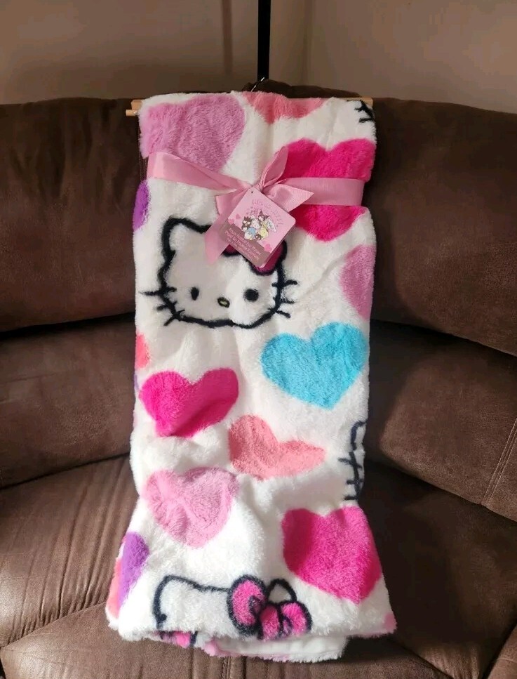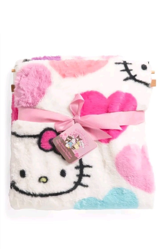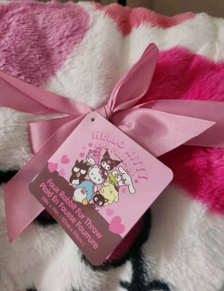 Brand New!!! Sanrio Hello Kitty & Friends Faux Fur Cozy Throw Blanket Valentine's 2025 Collection Size: 50" IN x 70" IN Super cute heart print Machine Washable Material: 100% Polyester Perfect for Hello Kitty Collectors ♡ Will be packaged carefully From a smoke free home