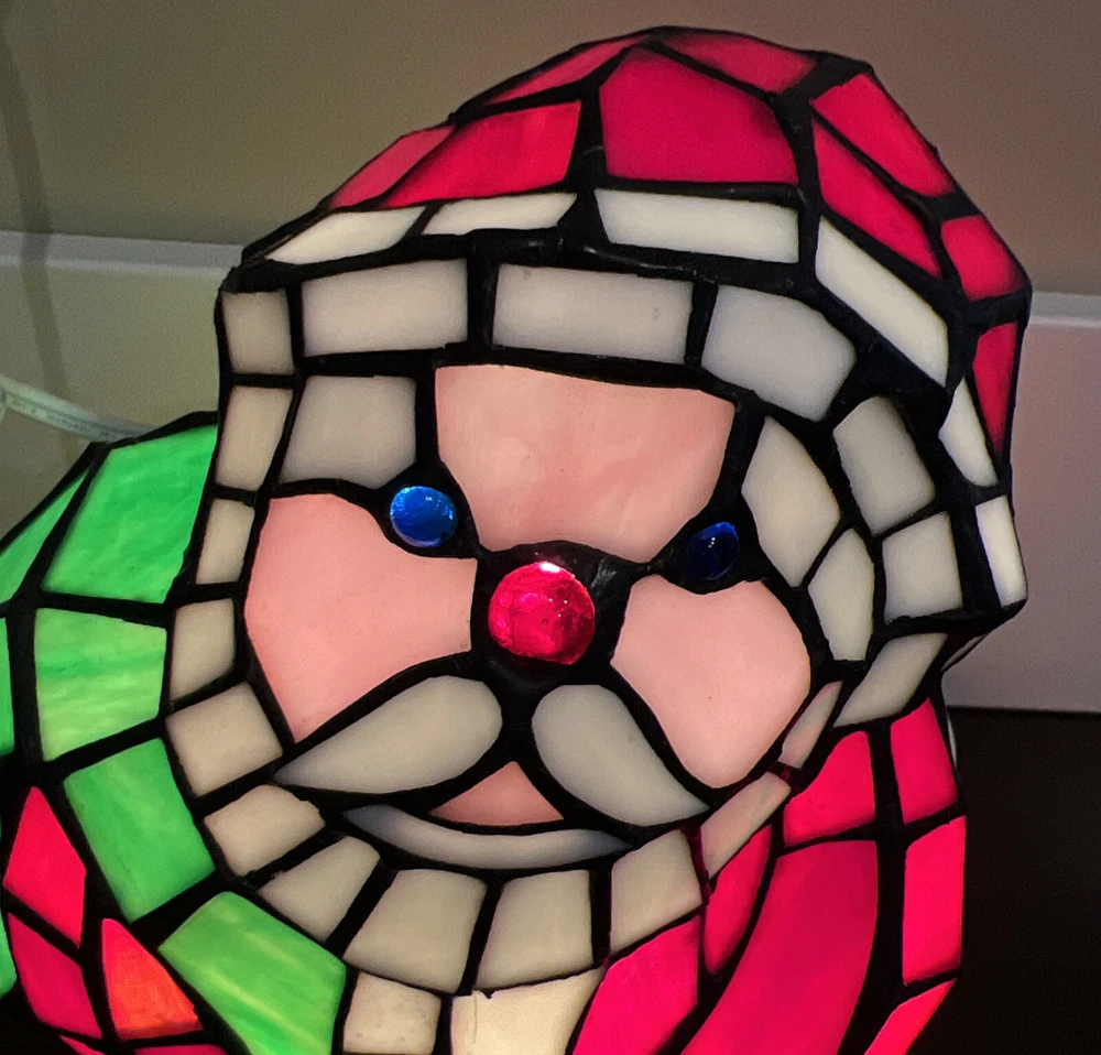 Cord Color:WhiteSensor Type:LightMPN:Does Not ApplyNumber of Settings:1Style:Stained Glassgtin13:Does not applyColor:MulticolorMaterial:Stained GlassType:Table LampBrand:UnbrandedUPC:Does not applyTheme:Christmas, SantaCharacter:SantaRoom:Bedroom, Dining Room, Home Office/Study, Living Room