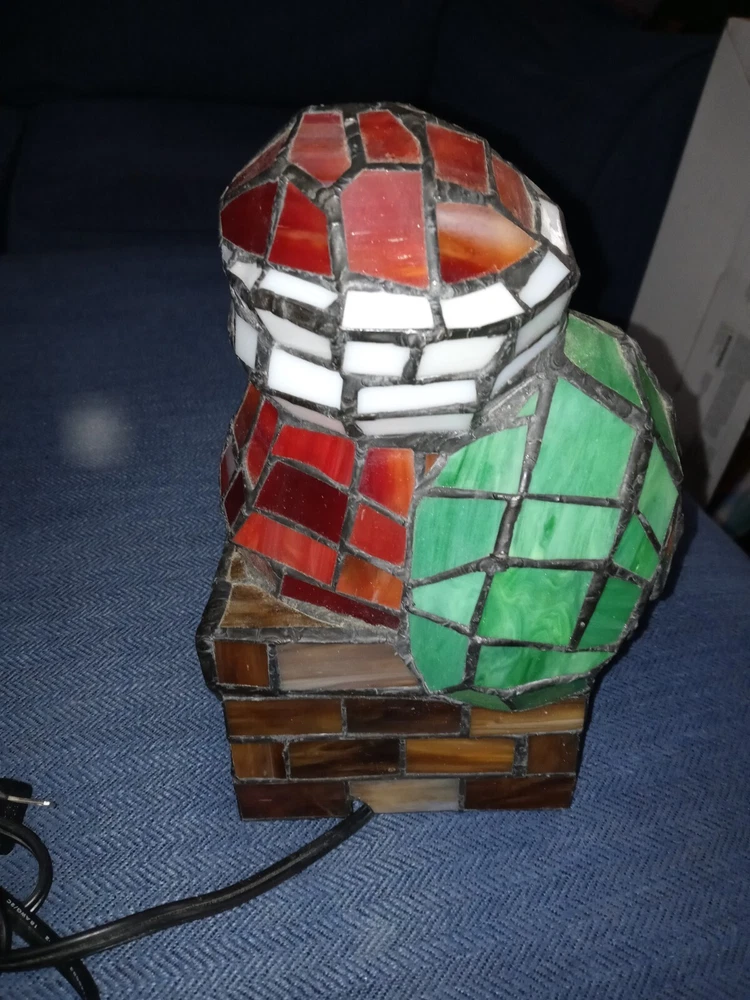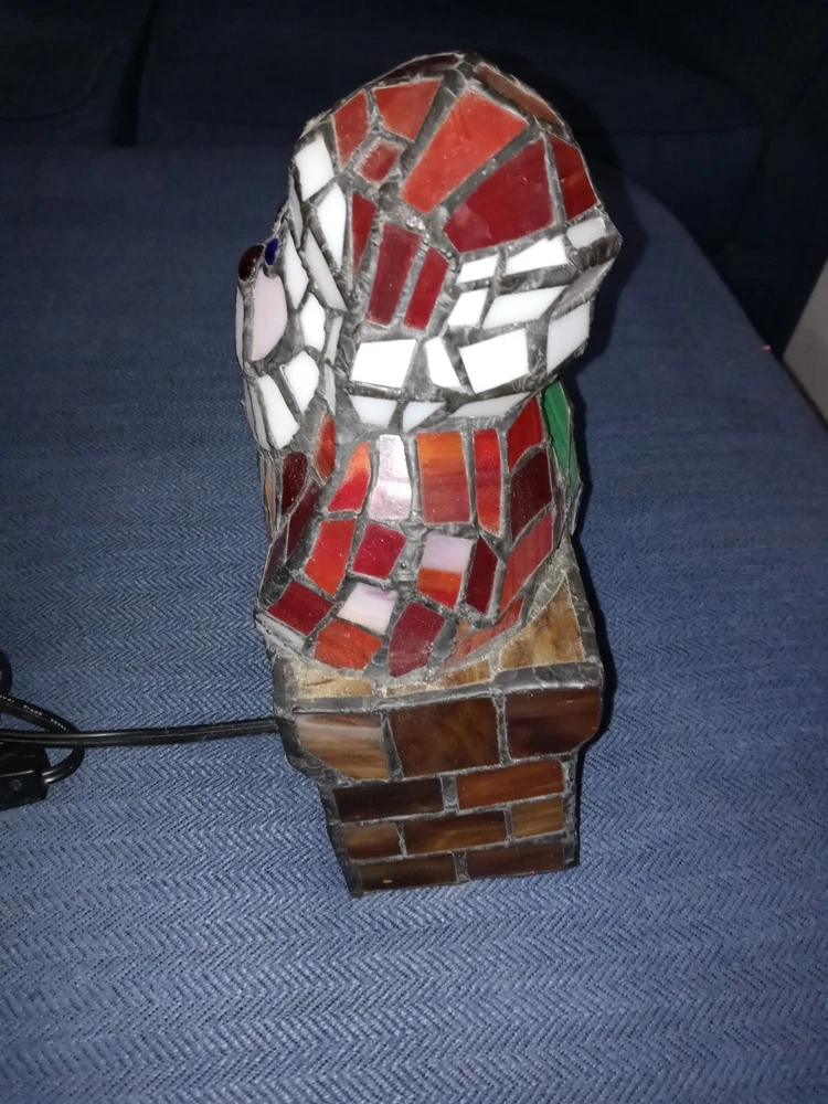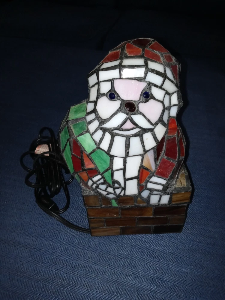 Santa Claus Tiffany Style 10 inches tall Stained Glass Accent Lamp Christmas Decoration. Plug in lamp with on off switch on the cord. Works Great No Chips No Breaks. Very Clean! Please look At Pics. Comes From Smoke Free Home.