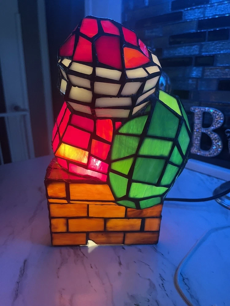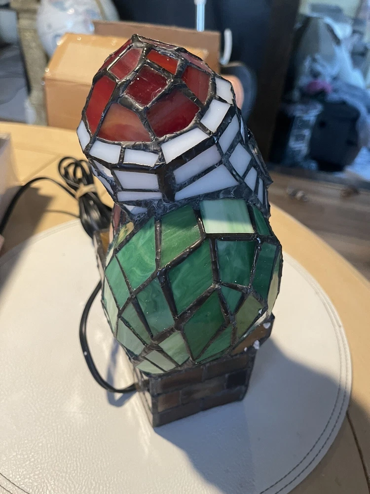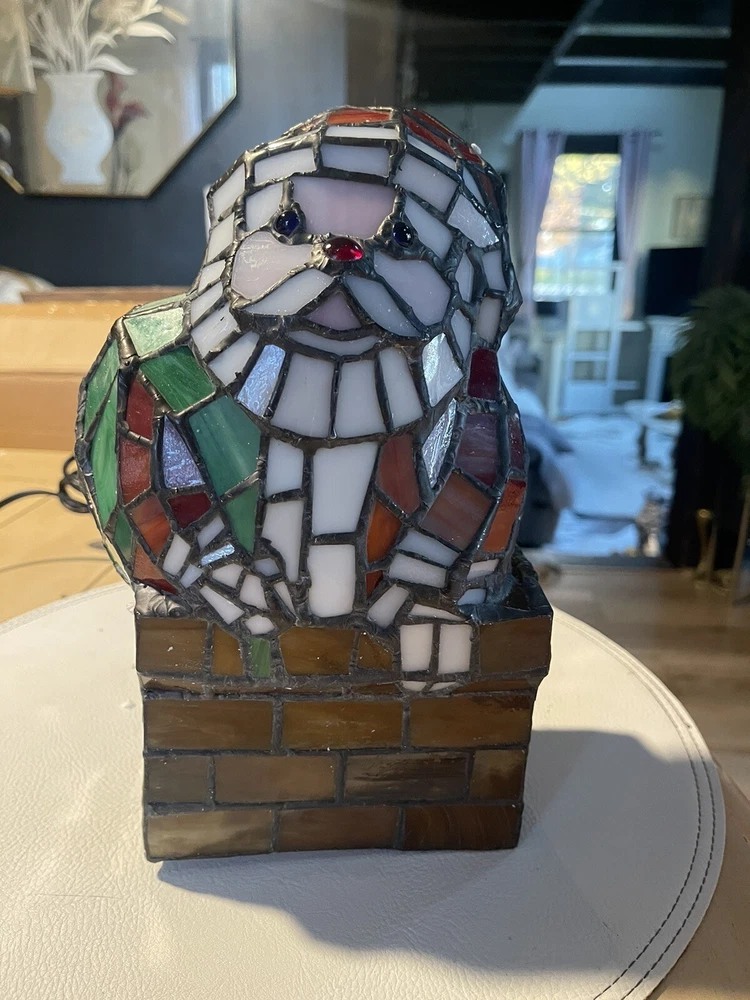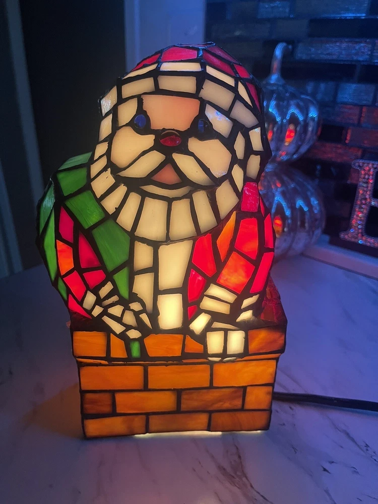 Santa Claus Tiffany Style Stained Glass Accent Lamp VTG Christmas decoration 10”. Condition is Used. Shipped with USPS Ground Advantage.