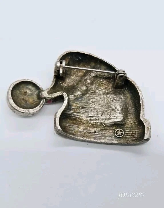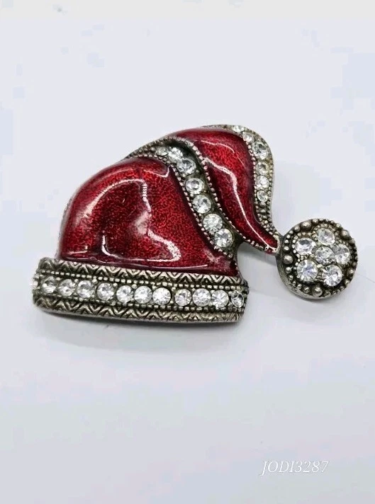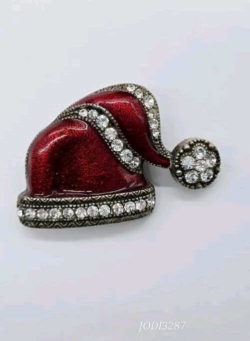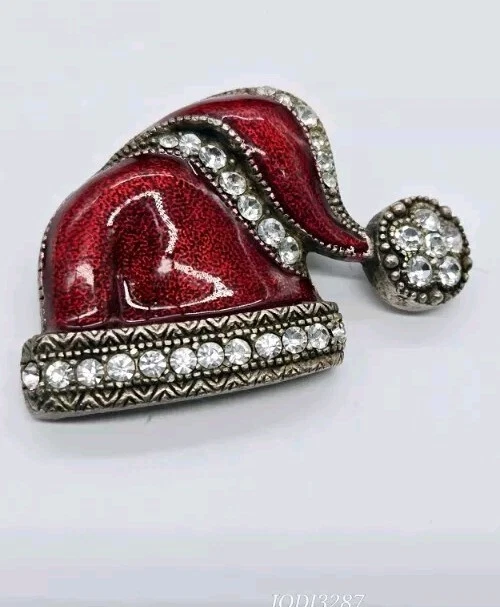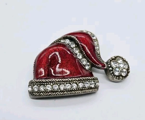 Vintage:NoOccasion:ChristmasShape:Santa HatItem Length:1.25 inJewelry Department:FashionColor:Red SilverCustomized:NoBrand:UnbrandedSigned:NoHandmade:NoBase Metal:UnknownPersonalize:NoMain Stone Shape:RoundMain Stone:CrystalMaterial:CrystalMain Stone Color:White/ColorlessDepartment:WomenCountry of Origin:UnknownType:Estate JewelryAntique:NoMetal:UnknownTheme:Christmas