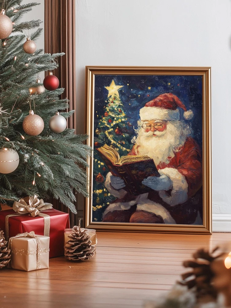 Santa Reading Book Art Print Christmas Tree Wall Decor Holiday Painting Vintage Style Santa Claus Festive Home Artwork Material: Premium luster photo paper Print type: Inkjet printing One side printed + The finish provides the highest possible resolution and color saturation + Lasts up to 200 years in color and 400 years in black-and-white + Printed on high-quality resin-coated photo base paper medium + Posters can be hung with double-sided tape, tacks, or framed + Hand washing with a gentle cry cloth is recommended for extended durability I will hand select the best choice of paper for your chosen design to ensure top quality results for a beautiful, bright and luxurious print. All prints are sealed in cellophane slips for protection during transportation, and are shipped in a protective cardboard envelope.