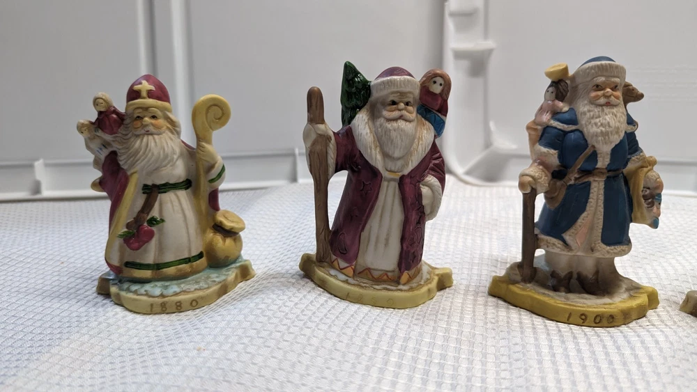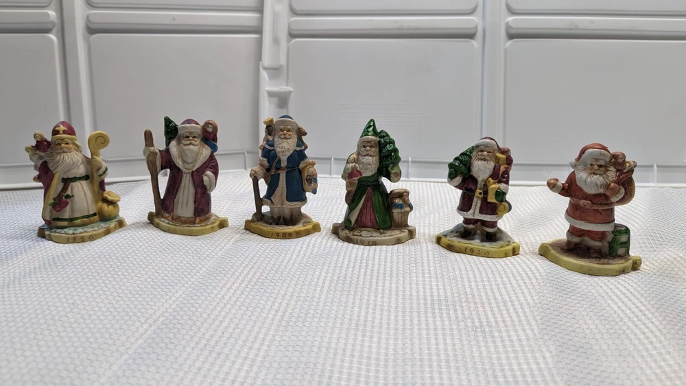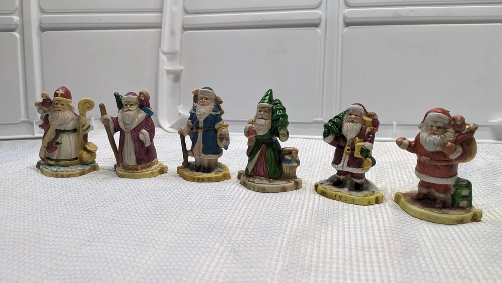 Santa Through the Years-Hand Painted Porcelain Figurine- Complete Set of 6 +Box