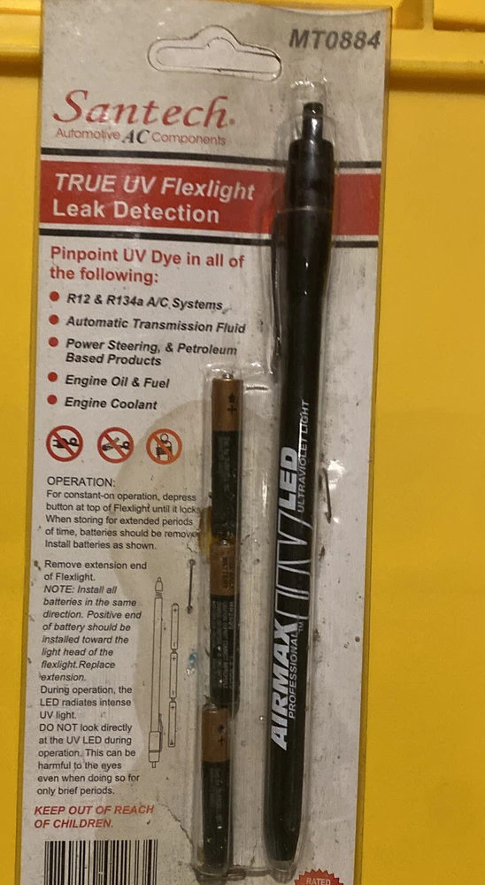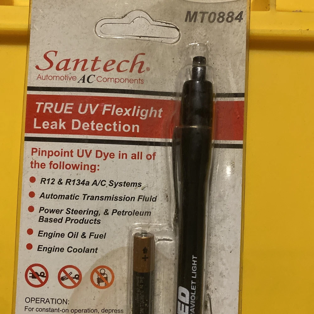 This Santech MT0884 leak detector is perfect for those in the automotive AC component business. With its true UV flex light, it allows for easy detection of leaks without the need for extensive inspection. The brand, Santech, is known for its quality products and this leak detector is no exception. The tool is specifically designed for HVAC and refrigeration professionals and is categorized under Business & Industrial, HVAC & Refrigeration, and HVAC & Refrigeration Tools. Its compact size makes it easy to carry around and use on the go. Purchase this leak detector today to make AC component leak detection a breeze.