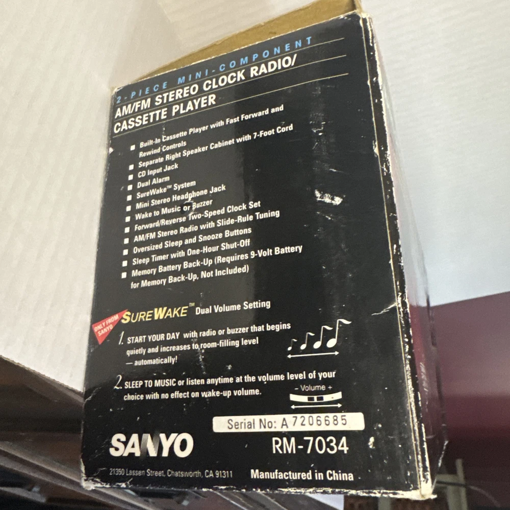 This Sanyo alarm clock radio is a fantastic retro find! The cassette player works perfectly, and the sound quality is surprisingly crisp. Even though the box was opened, everything inside is pristine—like brand new. The wake-up alarm is reliable, and the vintage design adds a cool touch to my bedside. Highly recommend for anyone who loves classic tech!