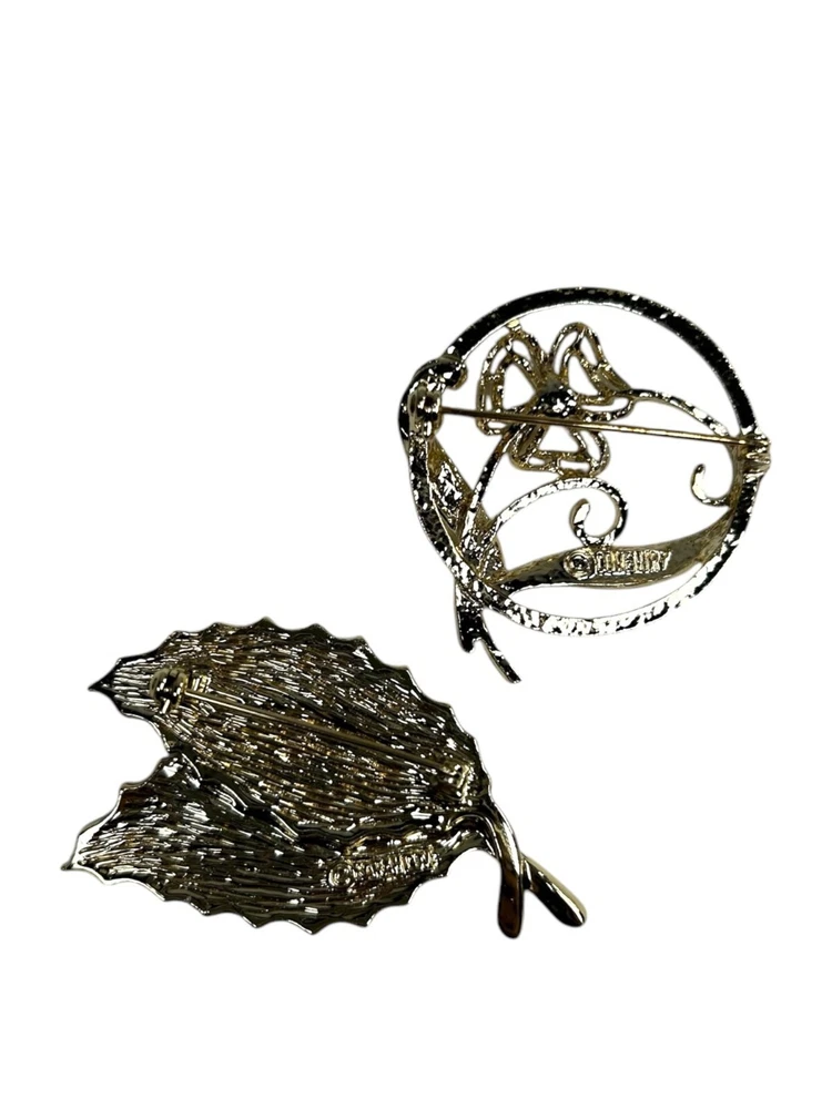 VINTAGE Sara Coventry Bundle in excellent pre-loved condition. See pictures for details Both have found safety catch clasp closures Both are marked Faux wood double leaf gold tone floral leaf brooch Signed SARA COV Length: 2.5" Width: 1.25" Faux pearl flower brooch signed COVENTRY Length: 1.5" Width: 1.5" #sarahcoventry #sarahcoventryjewelry #broochlot #brooch #sarahcoventrybrooch #broochbundle #fauxpearl #classy #vintagebrooch #vintagebrooches