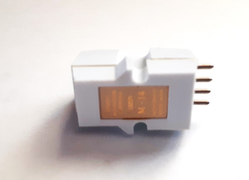 Satin M-14 phono cartridge for sale. This is 5.0 mV high output moving coils type. The cartridge is in very good operational and cosmetic condition. It has 50 hours of play time. Specifications: Output: 5.0 mV Frequency: 10-40,000 Hz Tracks: 0.8-2.8 gram Loads: 75 Ohm Unloads: 50 Ohm Compliance: 12 Sell: $175 Shipping inside USA is $6 Worldwide shipping is $19