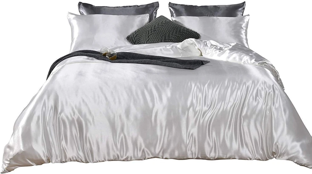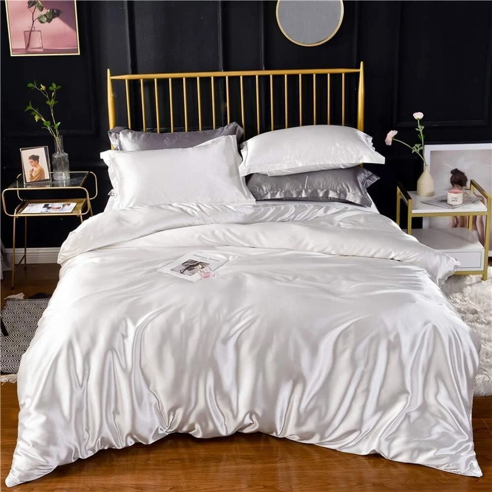 Satin Wrinkle Free Luxurious and Soft Silky with 10"–16" Deep Pocket 4 Pieces Durable Bed Sheet Set (1 Flat Sheet, 1 Fitted Sheet & 2 Pillowcases) Queen, White Satin. Package Includes: 1 Top/Flat Sheet, 1 Bottom/ Fitted Sheet, And 2 Pillowcases. Queen Size Measurement: 1Top/Flat Sheet (90X105) Inch, 1 Bottom/Fitted Sheet (60X80X16) Inch, And 2 Pillowcases (20X30) Inch. Extra Deep Pocket Sheet: These bedsheets are for very deep pocket mattresses. They fit any mattress with pockets that are 10, 11, 12, 13, 14 and 16 inches deep mattresses. There's a stretchable elastic around the extra deep fitted sheet which stretches for a nice tug around your mattress. Perfect for extra tall & large mattresses. It is perfect for any room. Highest Quality Best Satin Sheets: Made from satin silk for softness and luxury. Enjoy the luxury and comfort of soft sheets with the most amazing hand feel. Comfort, lustrous with softness, these sheets have great breathability for the perfect joy of silk sheets. Great Gift For Any Occasion: This bedding set is not only perfect for your own bedroom, guestroom, living room, but also a great birthday Christmas New Year Gift Idea for boys girls women men child boyfriend girlfriend adults. Surprise your friends and family with these elegant and durable sheets. Care Instructions: Machine washable, wash with similar colors in cold water, recommend to hung dry, do not bleach, cool iron if necessary. bout Us: Super Soft Luxurious and Ultra Soft Best Pure Satin 4 Pieces Bedding Sheet Set With 16" Deep Pocket (1 Top/Flat Sheet, 1 Bottom/Fitted Sheet & 2 Pillowcases). Give yourself a wondrous night's sleep with this luxurious satin sheet set. The satin sheets will envelop your bed in elegance and luxury at a more affordable cost. The fitted sheets are made fully-elastic to ensure a secure fit on mattresses up to 16 inches deep. Available Size: Twin Size, Twin XL Size, Full Size, Full XL Size, Queen Size, King Size, California Size, Customize. Available Colors: Red, Burgundy, Lilac, Olive, Peach, Purple, Royal Blue, Sage, Sky Blue, Taupe, Turquoise Blue, White, Ivory, Elephant Grey, Silver Grey, Black, Pink, Gold, Brown, Chocolate, Hot Pink, Aqua Blue, Yellow.