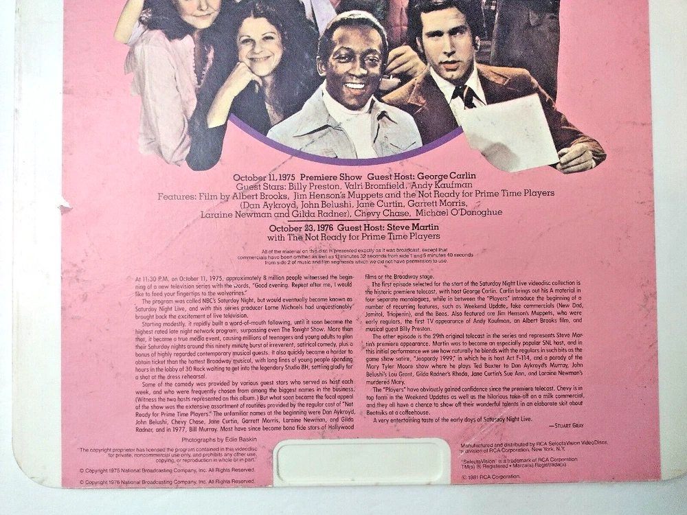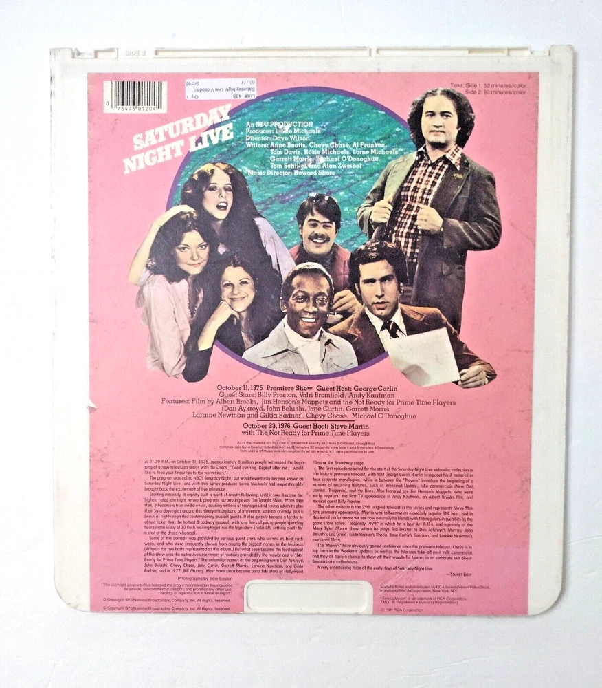 RCA SelectaVision VideoDisc CED Saturday Night Live October 11. 1975 & October 3, 1976 Volume One with Hosts George Carlin Premier Show and Steve Martin 29th Episode 0 76476 01204 Thank You.