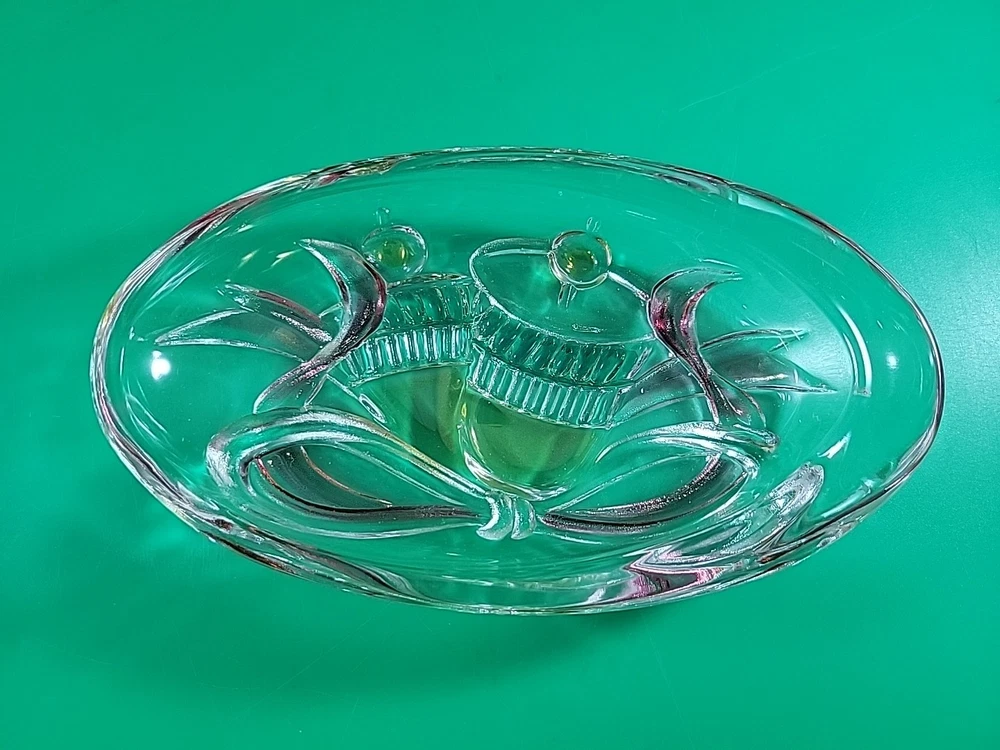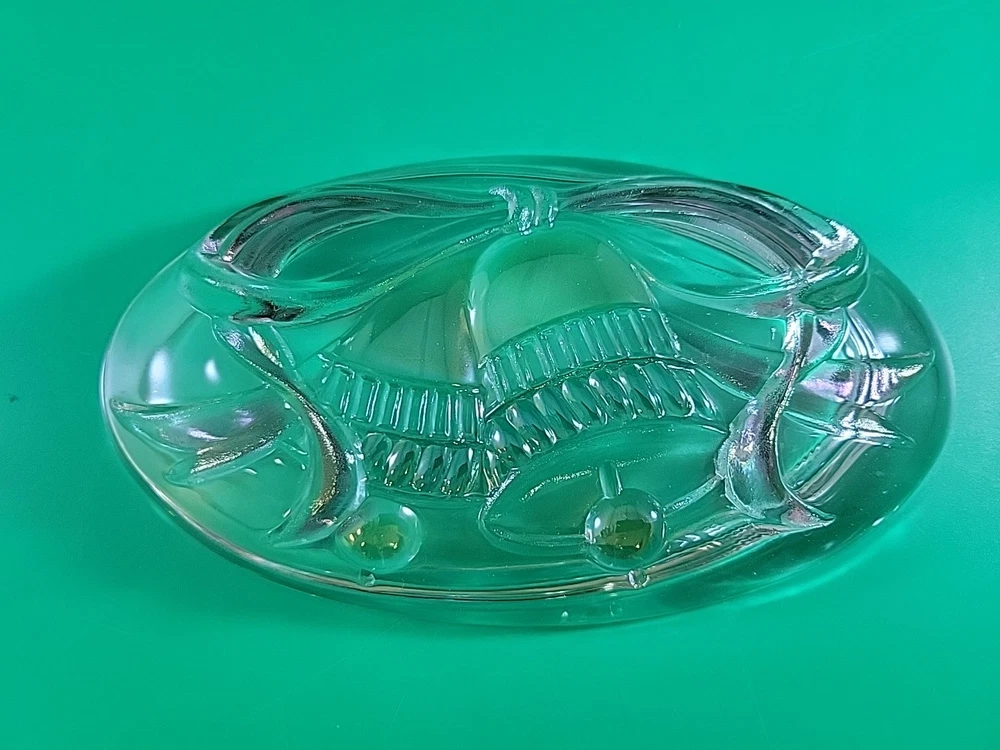Our merchandise has been generously donated by the friends and families of Community Mainstreaming Associates (CMA). All proceeds from the sale of this item benefit CMA, a 501c3 charity supporting adults with intellectual and developmental disabilities. Thank you for your support. The Savoir Vivre Holiday Spirit Oval Glass Candy (or Soap) Dish with Bells is a festive addition to your Christmas decor. Made of multicolor glass and featuring a Christmas theme, this candy dish adds a touch of holiday cheer to your home. With a length of 7 inches and a width of 4 inches, this item from Japan is perfect for displaying your favorite candies or soaps during the holiday season. The bells on top add an extra element of charm to this beautifully designed dish.