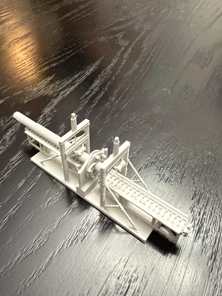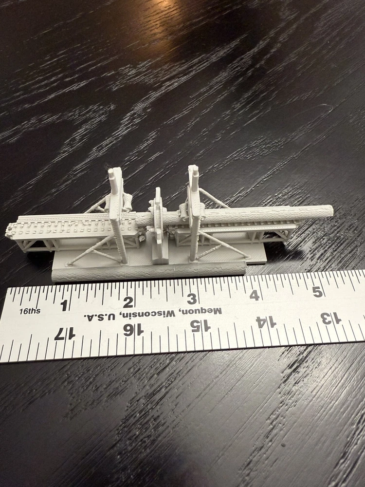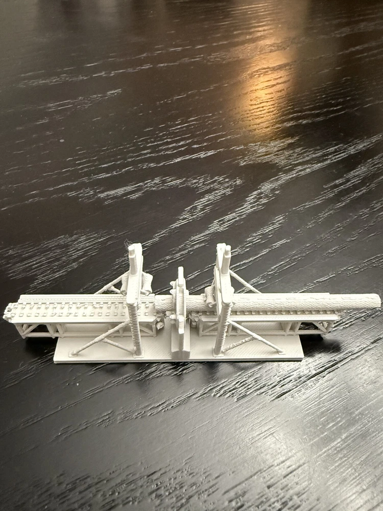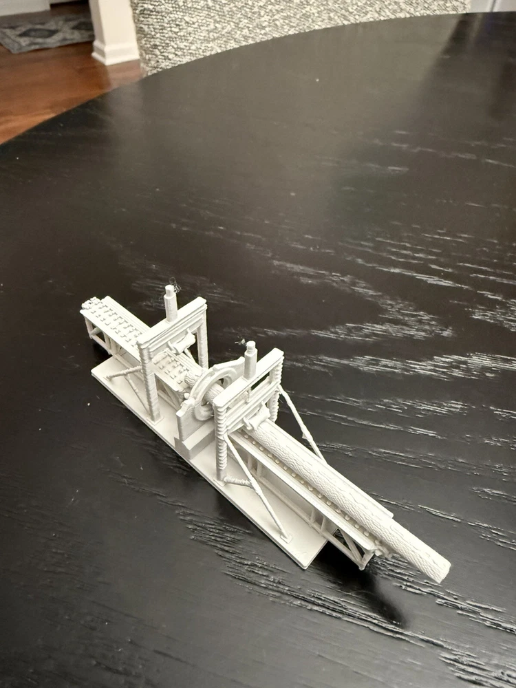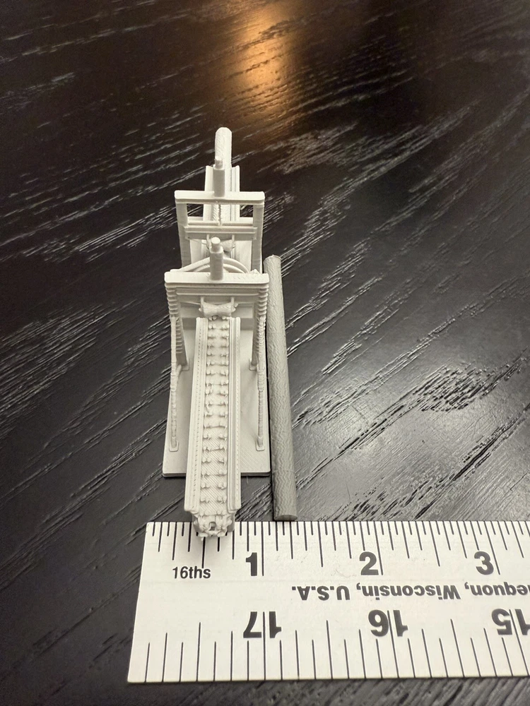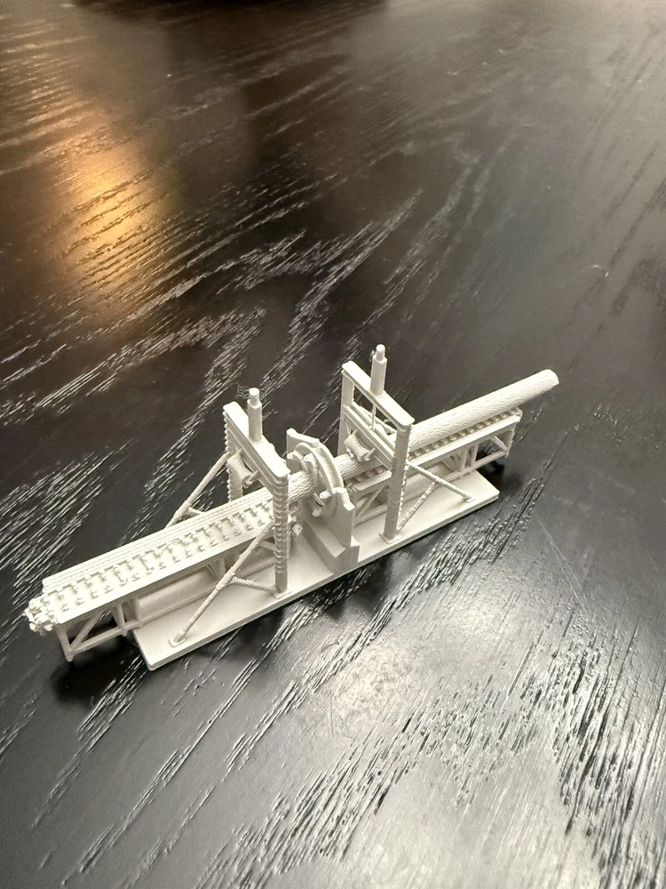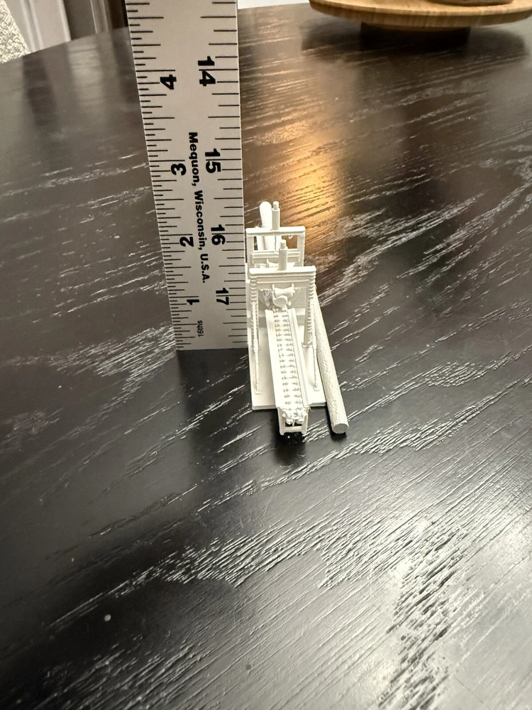 The product is an N Scale plastic industrial building of a saw mill log debarker, It is not painted, measures 1:160 in scale, and requires no assembly. Manufactured in 2025, it is designed for model railroads and trains in the N gauge.