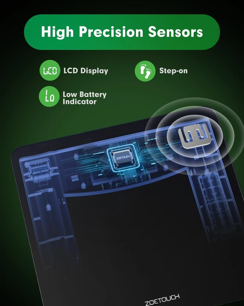 Digital Body Weight Scale Bathroom Scale 560lb Black High Capacity Body Weight Scale: 560 lbs - the highest heavy duty scale for people in the market, provides accurate readings up to 560lb (255 kg); Made in 8mm thick tempered glass and be well made with quality materials, providing exceptional sturdiness Extra Wide Platform: This weight scale has 12.9” x 12.2” super wide platform, easy to use for most foot sizes and a perfect scale for elderly, obese and heavy people; switch units among lb/kg/st, auto off feature extends the battery life Large LCD Display and Long Stay Time: Large 4.2 inch LCD display with bright blue backlight and large digital numbers, easy to read even in dark environment; weight stays on screen for about 15 seconds after stepped off scale, provides enough time for big people to read weight Comparison Function: The up and down icon of the bath scale can tell you the measurement is loss or gain compared with the new and last records( CAN'T display last weight, only show the current weight), icon disappears if weight is the same , easily to help you to reach your goal Accurate Digital Bathroom Scale: Built in 4 High Precision Sensors to ensure consistent and accurate readings; Graduation increments of 0.2lb /0.1kg;4 AAA batteries and 1 measuring tape included