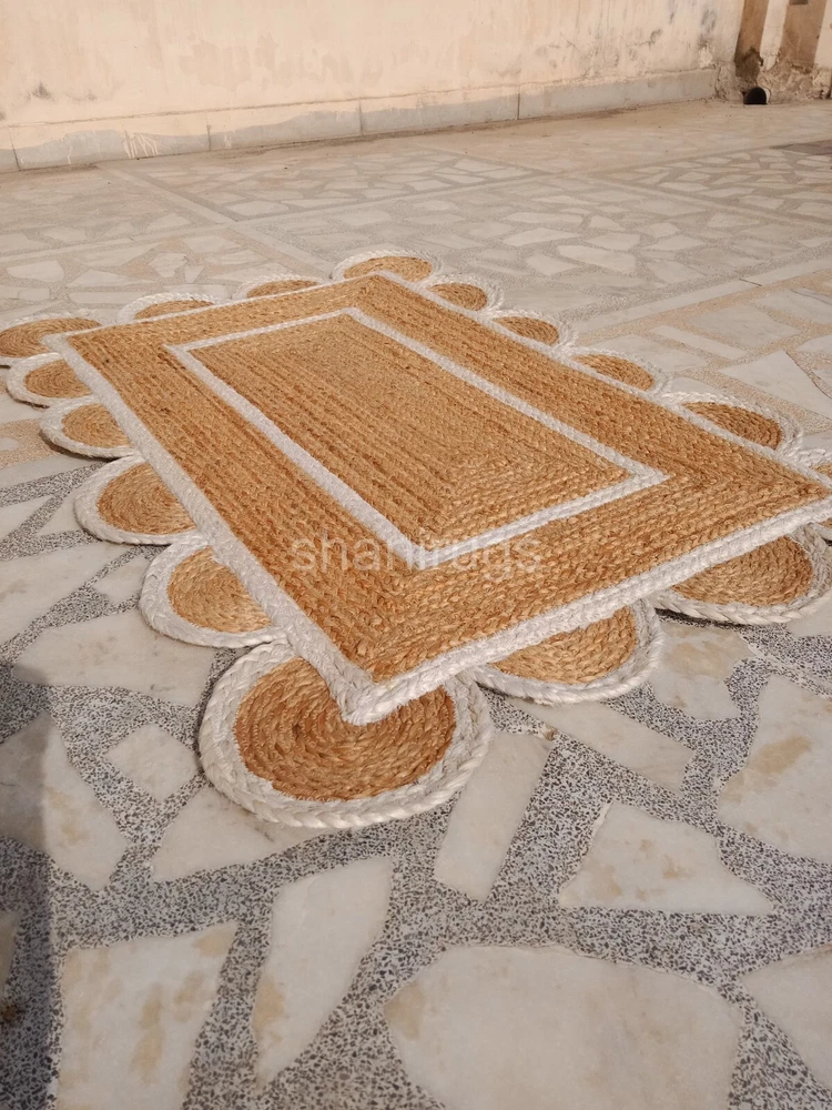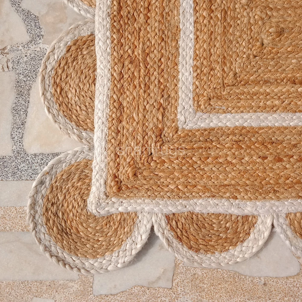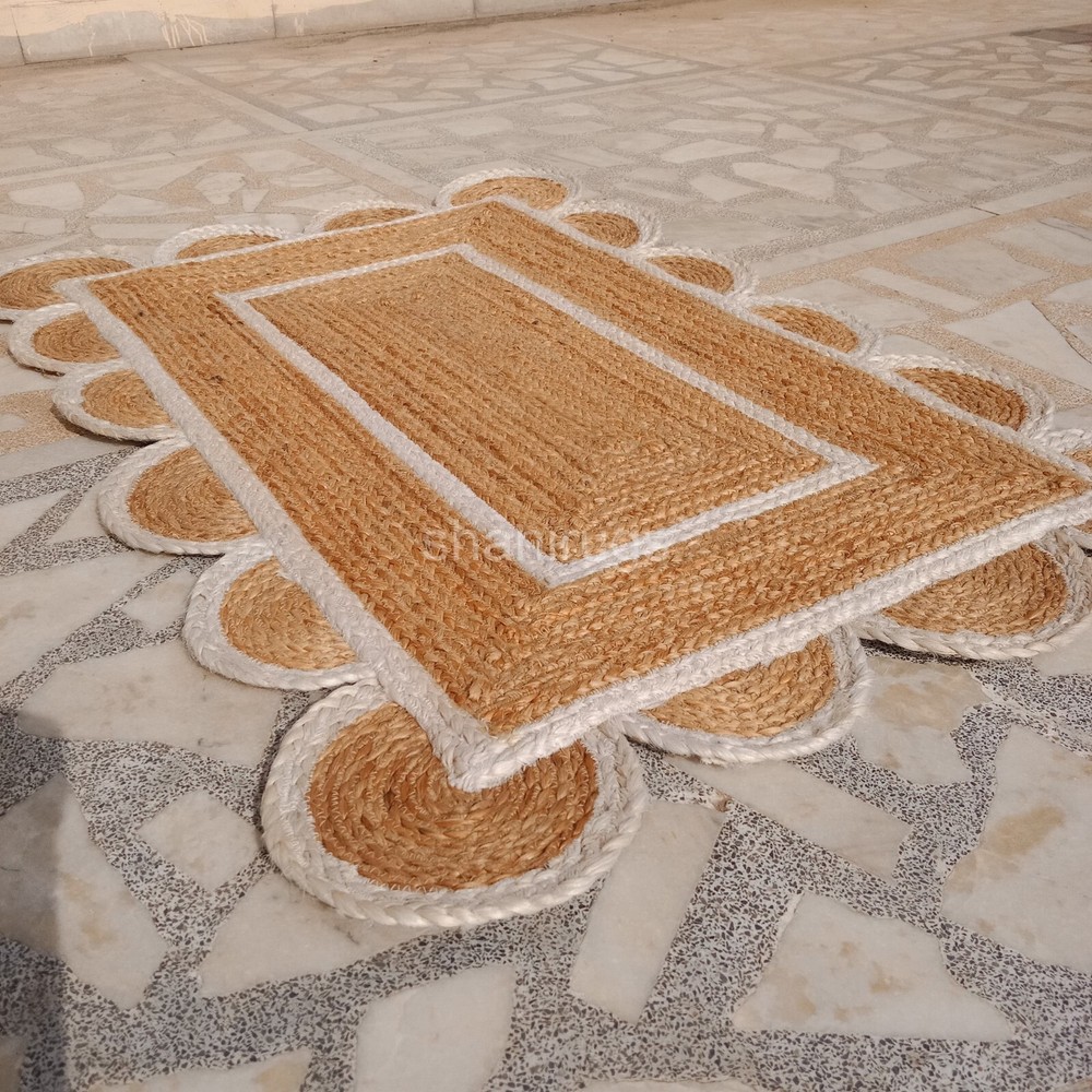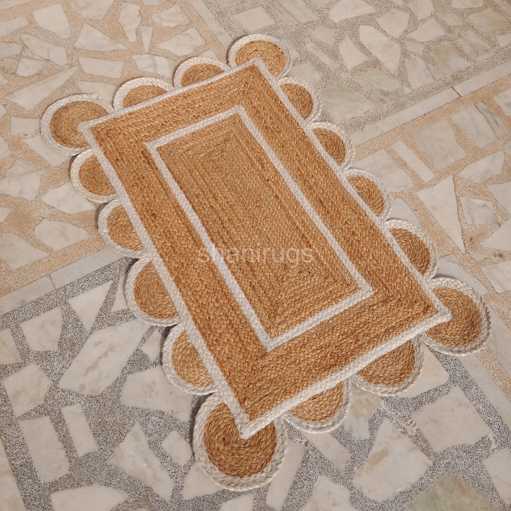 Scalloped Natural Jute Rug Braided Jute mat | Kitchen Rug Bath mat Scallop Edge