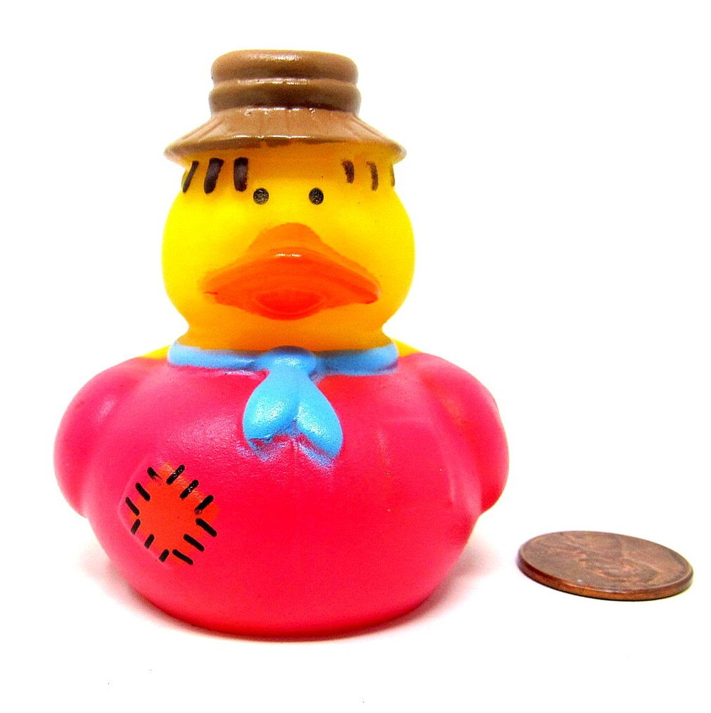 Scarecrow Rubber Duck, 2", Purple Jacket, Tan Hat, Halloween, Fall / Harvest / Thanksgiving Decor, Squirter, US Seller. Use as gift tie, party favor, float in hot tub, stocking stuffer or gift basket. Condition - New. Perfect condition. Never used. There may be slight paint smudges from manufacturing. Actual Size - 2 " tall. Penny is not included. Squirter - There is a hole in the beak. Not guaranteed to float upright. You will receive the actual item pictured & described All our packages ship with tracking Stored in & Ships from our smoke free - pet free home. If there is a problem please contact us we try to respond within a few hours. Thank you for visiting, please visit us again, real soon. HerbsCraftsGifts
