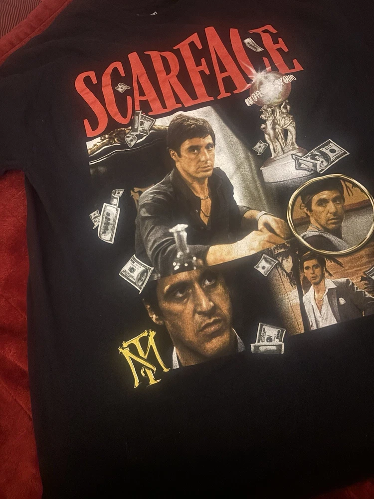 Show off your love for the iconic movie Scarface with this limited edition Al Pacino T-Shirt. The black cotton shirt features a graphic print of the legendary actor and is machine washable for easy care. With a regular fit and short sleeves, this shirt is perfect for any fan of the film. The shirt is available in size medium and is tagless for added comfort. The breathable material ensures that you stay cool and comfortable all day long. This Scarface Al Pacino shirt is a must-have for any movie enthusiast and is sure to make a statement.