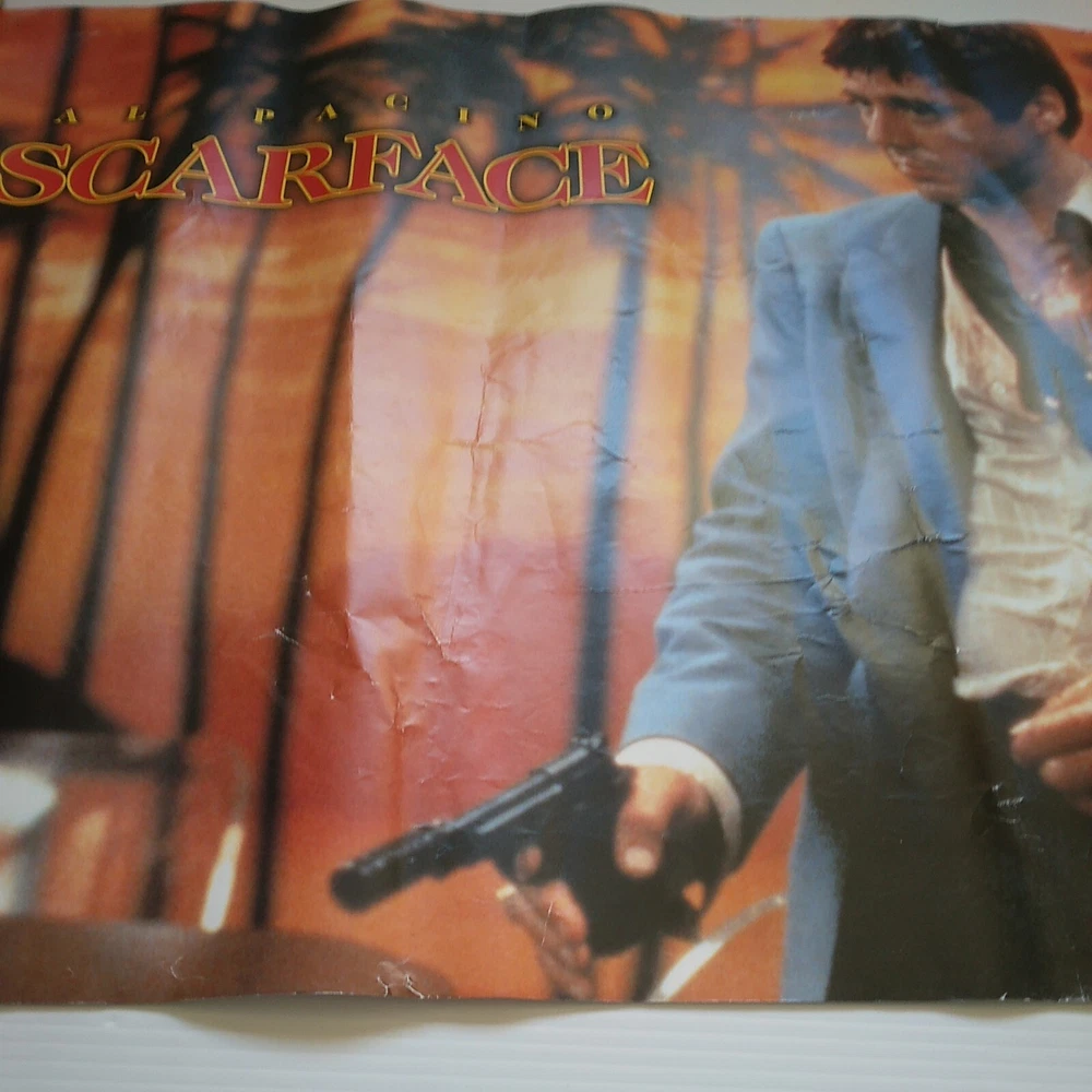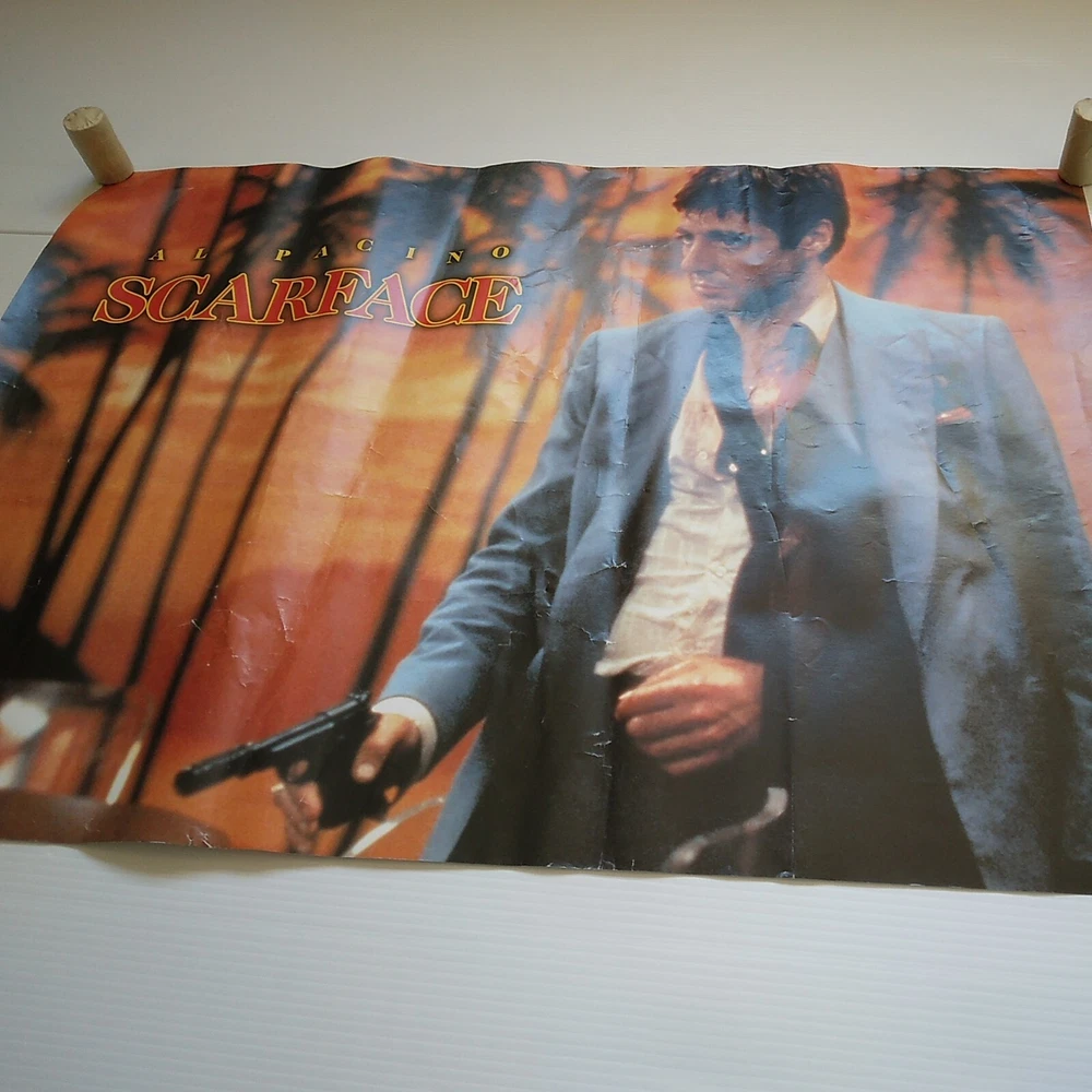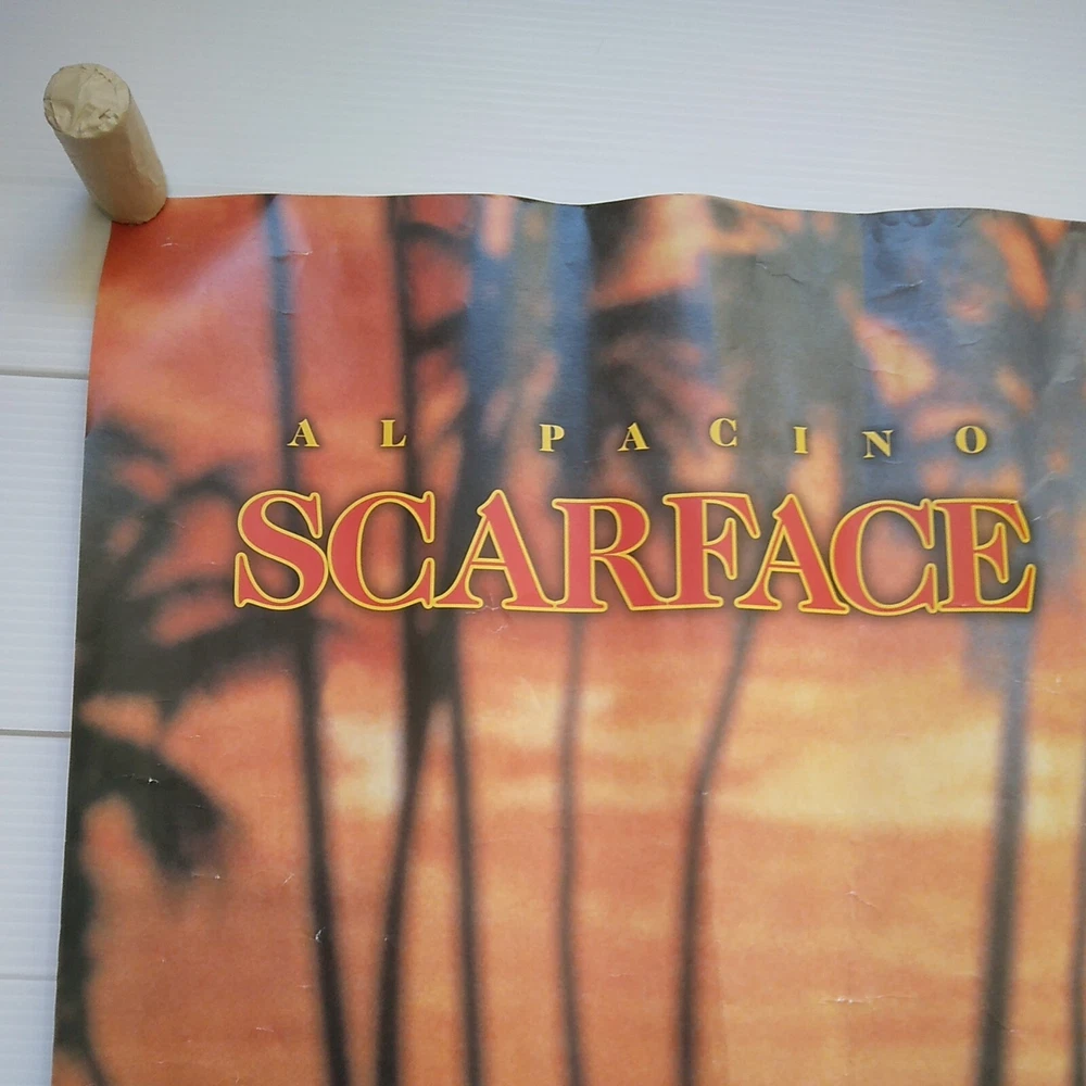Scarface Movie Poster 33 inches tall by 24 inches wide. This poster is in overall decent shape. Has some pinholes, slight wear, amd waviness. See pictures for a detailed look. Will ship well protected in a sturdy mailing tube. Thanks for the interest.
