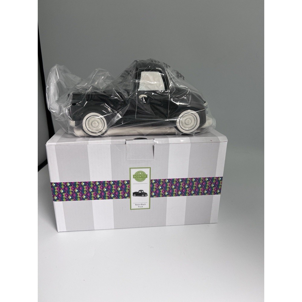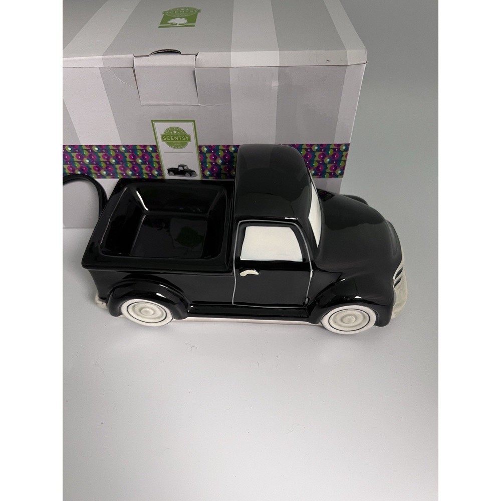 This Scentsy BLACK RETRO TRUCK Warmer is a rare find from the Father's Day Collection and is perfect for anyone who loves vintage trucks. It features a step side truck design and is made of ceramic material. The warmer is easy to use and adds a touch of retro style to any room. The Scentsy BLACK RETRO TRUCK Warmer is perfect for everyday use and can be placed in any room of your home, including the office, bathroom, sunroom, entryway, foyer, garage, kitchen, bedroom, living room, lounge, workshop, guestroom, or dining room. It is a great addition to any home décor and is sure to impress your guests. Get this unique item now and add a touch of vintage charm to your home!