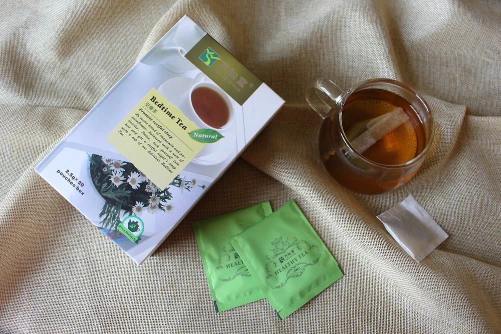 Description Name Factory Wholesale Sleeping tea / Night tea / Relax tea For Improving Sleeping Quality Specification 2.5g×20bag/box ,3g×20bag/box Main Ingredients Chamomile,Passionflower, Licorice Function 1, Promote relaxation and sleep 2,Regulate endocrine system to calm body nervousness and mind to promote a good night’s sleep 3,Reduce daily stress to support you a sweet sleep Direction Pick the teabag into the cup, brew it with boiling water for 3-5 minutes then drink, every teabag can be repeated brew for 2-3 times until it diluted. You can also add lemon or honey according to personal taste Min order quantity ≥3000box Applicable People Chronic insomnia group, people with poor sleeping quality after pressure, elderly difficult to sleep, people easy to wake up or have nightmare Storage Keep in a dry and cool place Port SHANGHAI, GUANGZHOU ,SHENZHEN Delivery time 30-40days Packing information Tea+filter paper bag + plastic envelop+carton P ayment terms ◊ Payment terms: T/T,Western Union, balance before shipment, L/C is available. ◊ Trade terms: FOB,CIF,CNF&EXW are available Transportation B y sea , by Air Advantages of Our Products ◊ The big and professional tea bags manufacturer in China. ◊ Safe quality, 100% nature organic raw material . ◊ Eco-friendly, pass GMP& ISO9001 , etc. ◊ Welcome OEM orders. ◊ Variety products, meet different needs. products feature Improving Sleep Tea, tea drinks for insomnia is made from the most comfort, sedation natural herbal extract. It does not contain any additives, no dependence, no drowsiness, no side effects, no contraindications when taking period. It is a healthy drink with natural sweet taste and fragrance. In a very short period of time it can regulate the brain's organism, make it in equilibrium, so that improve sleep quality of different degrees of insomnia. It can refresh the nerves, regulate the nervous system, endocrine system and body organs , make tissue harmony between the normal circadian rhythm, promote human physiological sleep back to nature, a fundamental solution to insomnia problem. The symptoms caused by insomnia such as dizziness, fatigue, weakness disappear together after long time drinking, making people no longer worry about insomnia. It will calm your mind, free you from anxiety and keep you in good spirits every day. Also it can help skin metabolism, play a role on skin health beauty. But it is completely different from sleeping tablets, you can drink it any time every day Products details