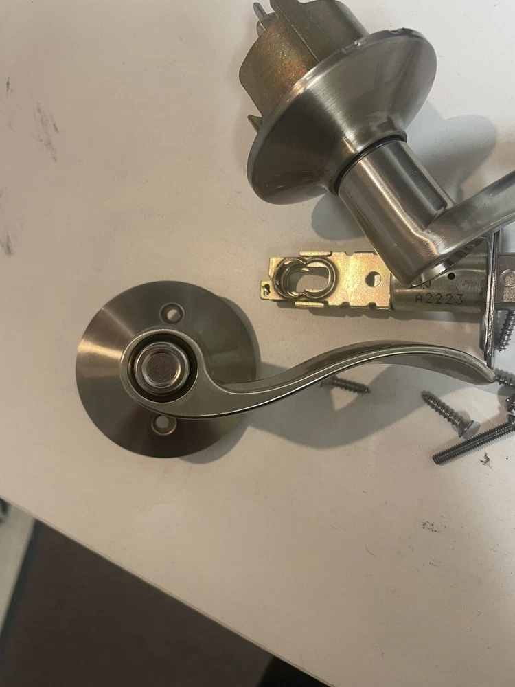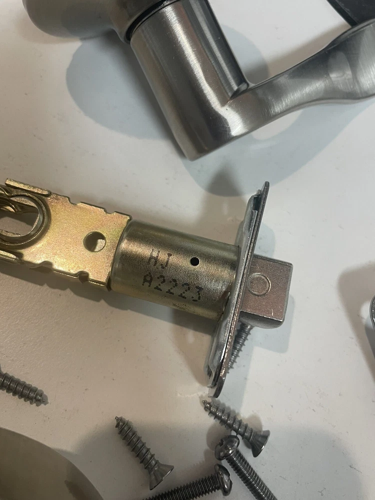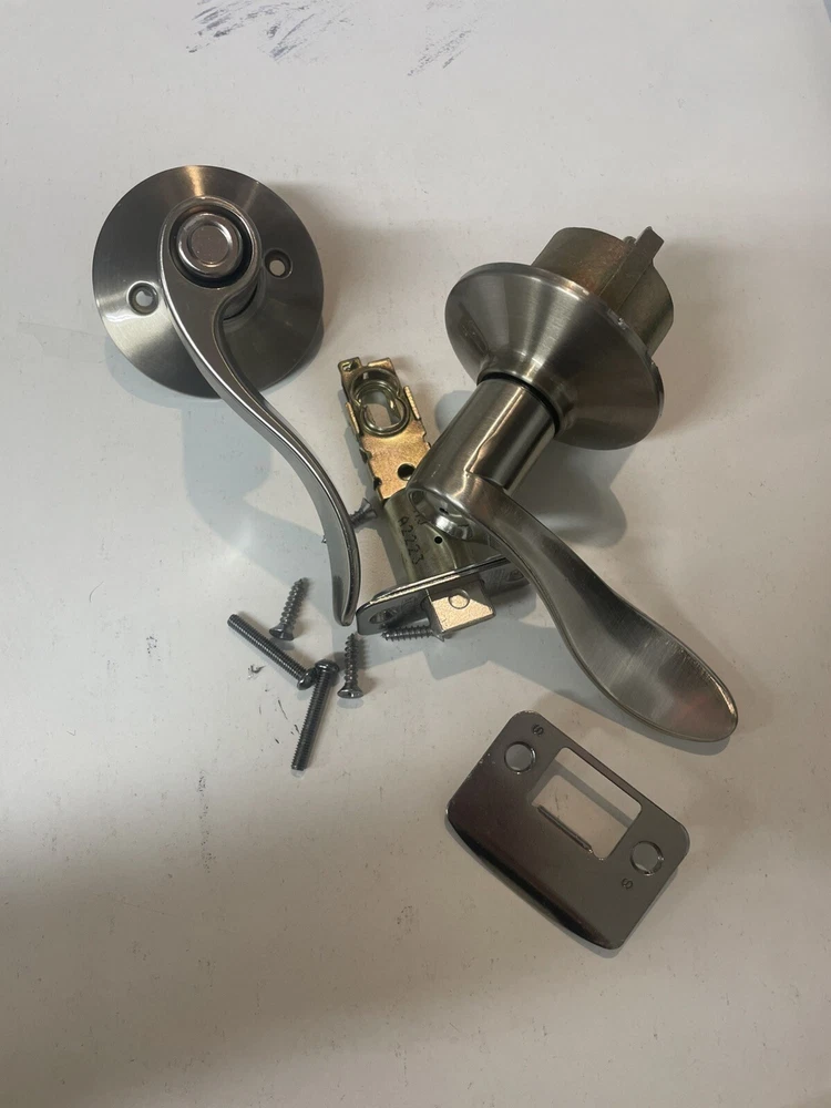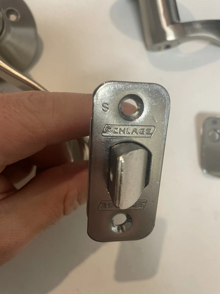 This product is a Schlage Nickel Right Handed push button Privacy Door Lever Set in a transitional style.
