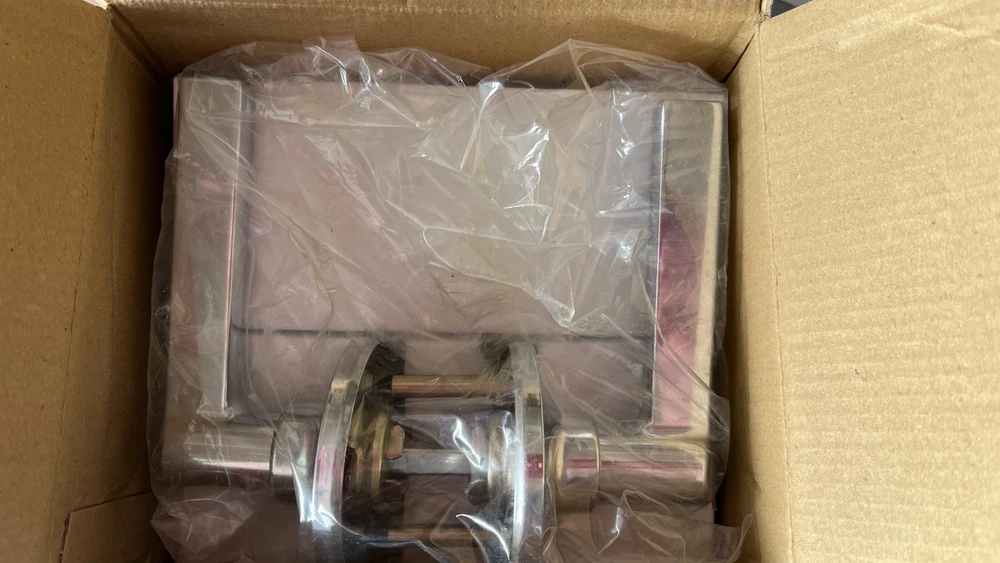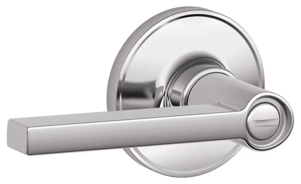 Removed from new construction and swapped out with a different finish Product specifications Style Color Bright Chrome Style Name Contemporary Exterior Finish Chrome Measurements Item Dimensions L x W 5.71"L x 3.07"W Item Weight 1.5 Pounds Unit Count 1.0 Count Features & Specs Handle Type Lever Specific Uses For Product Door Additional Features Concealed Screws