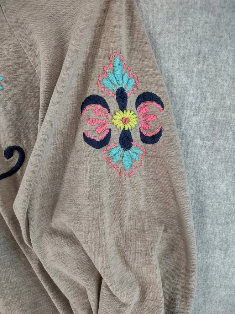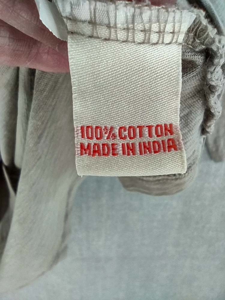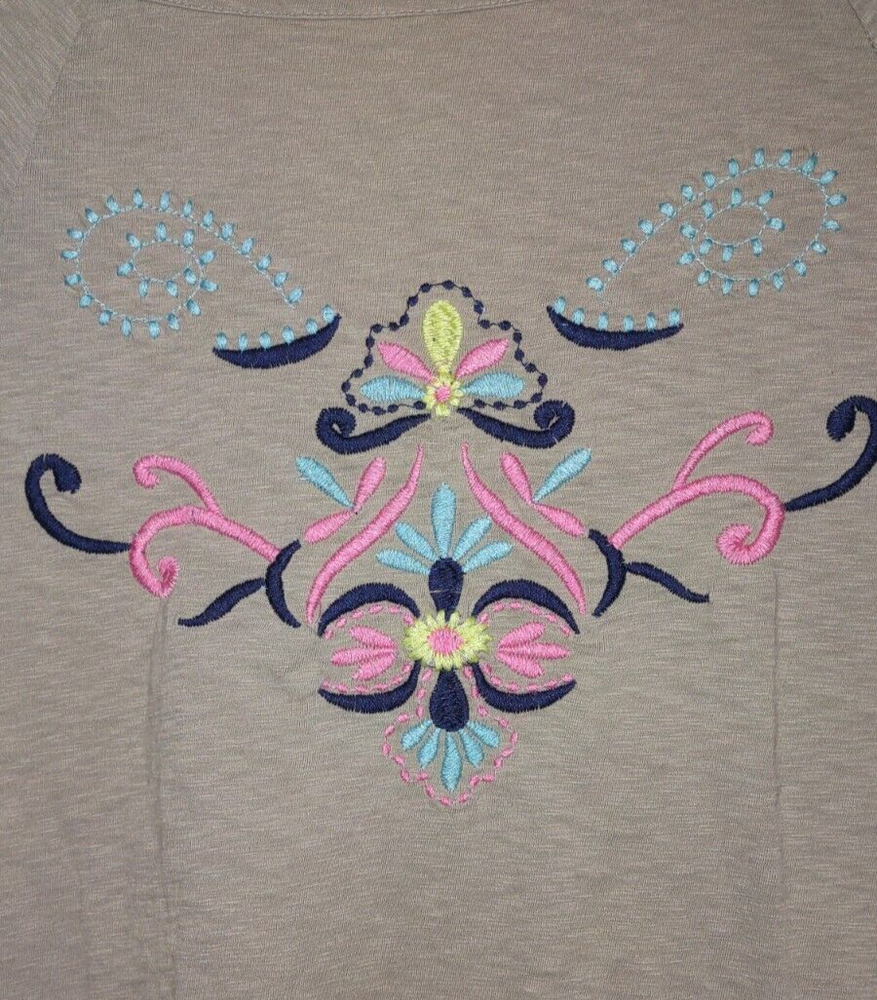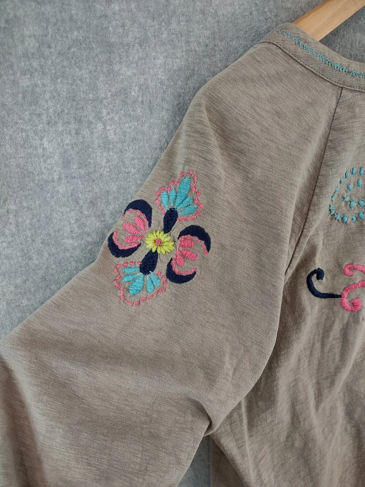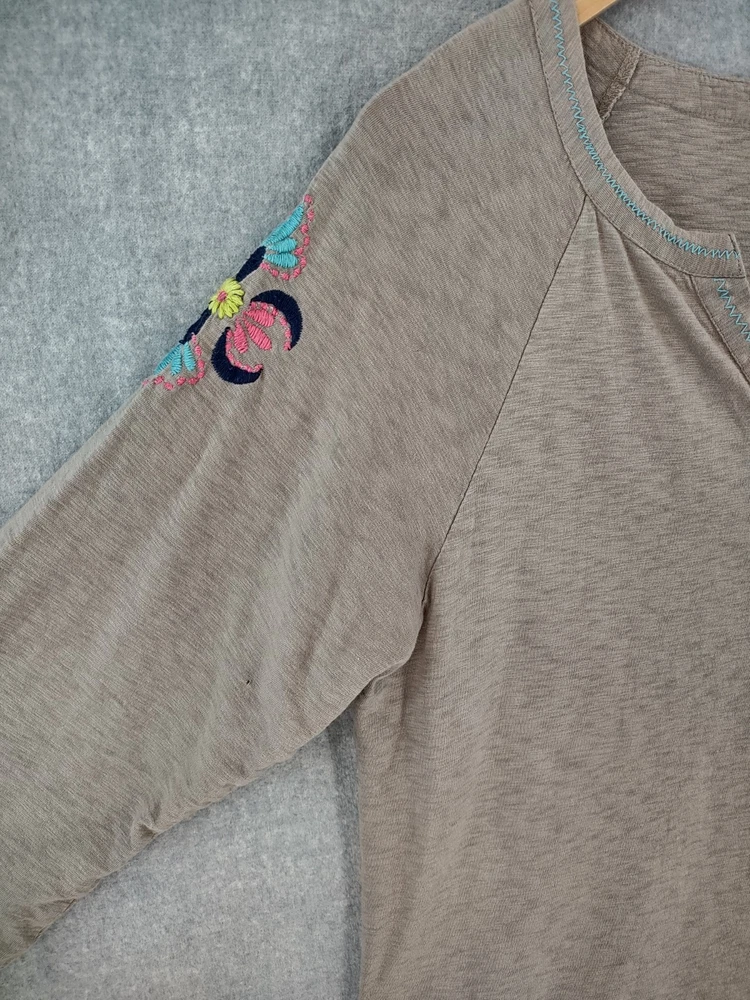 Welcome to Aspen Crossing, your destination for modern western bohemian style reflecting the rugged beauty of our American West. Schona Top Womens Large Bohemian Embroidered Woven Slub Cotton 3/4 Sleeve Split V-neck Taupe Beige 25.5" LENGTH: Measured from the top of the shoulder to the hem. 20.2" CHEST WIDTH: Underarm to underarm, measured flat from left to right. It is always best to compare the measurements above with a top that fits you comfortably. CONDITION - Good pre-owned condition. Pinhole on the sleeve, hole repair on front. All items are cleaned per EBAY standards. Not spot treated. See the photo gallery to view this items measurements and condition. SHIPPED - USPS First Class Mail unless item weight requires priority mail. RETURNS accepted, must be returned within 30 days in original condition to receive a full refund. SHIPPING AND HANDLING We ship all packages within five business days Monday through Friday except Holidays. Consolidated shipping is available for multiple purchases. Thank you for helping our planet and buying previously owned and loved items. I am grateful for your business. Enjoy! Check out our eBay store and follow us. There are new listings daily. CUSTOM SKU: Disclaimer: While we make every effort to capture the most accurate depiction of every item when photographing, colors may vary from screen display to in person therefore we cannot guarantee exact shade on any item. Message us if you have questions.