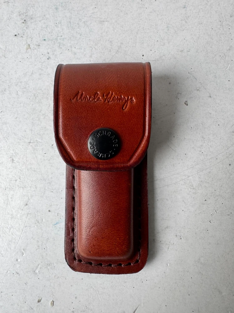 Schrade Uncle Henry LB5 Folding Pocket Knife Smokey Lockback with Leather Sheath Description Schrade Uncle Henry LB5 Folding Pocket Knife Smokey Lockback with Leather Sheath. Product Detail • Brand : Schrade • Model : Schrade Uncle Henry LB5 • Blade Color : Silver • Type : Pocket Knife Please message me if you have any questions.