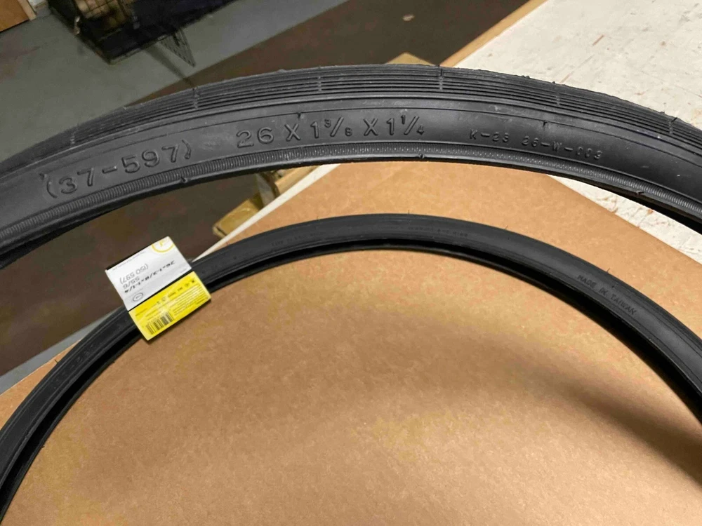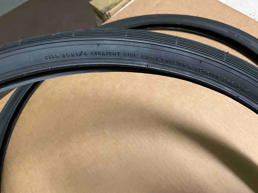 Aftermarket fits Schwinn.Check your tires to verify the size you need before purchasing. I am not sure of all models this set fits. These tires fit only Schwinn S5 and S6 rims. More classic bicycle parts on my ebay store. HELPFUL HINT! If you plan on buying more than one item from me in a particular session then please wait until you have finished shopping before paying for these items. This will insure that all the items will be shipped in the same package and all items will have the same tracking number uploaded to the Ebay site for your access. Thanks for you help!! PLEASE, if you plan on buying more than one item from me then put them in your ebay shopping cart. When you done you can go to the cart and pay for them all at one time. That way you will have one tracking number and the chance of losing packages will be greatly diminished. Will pack well.