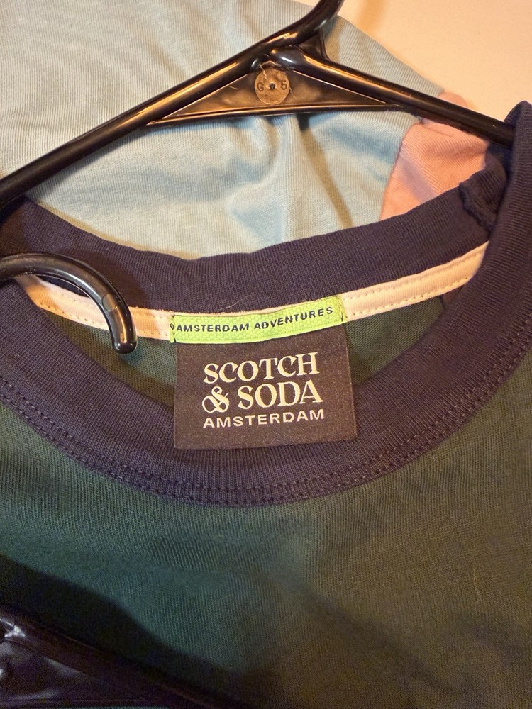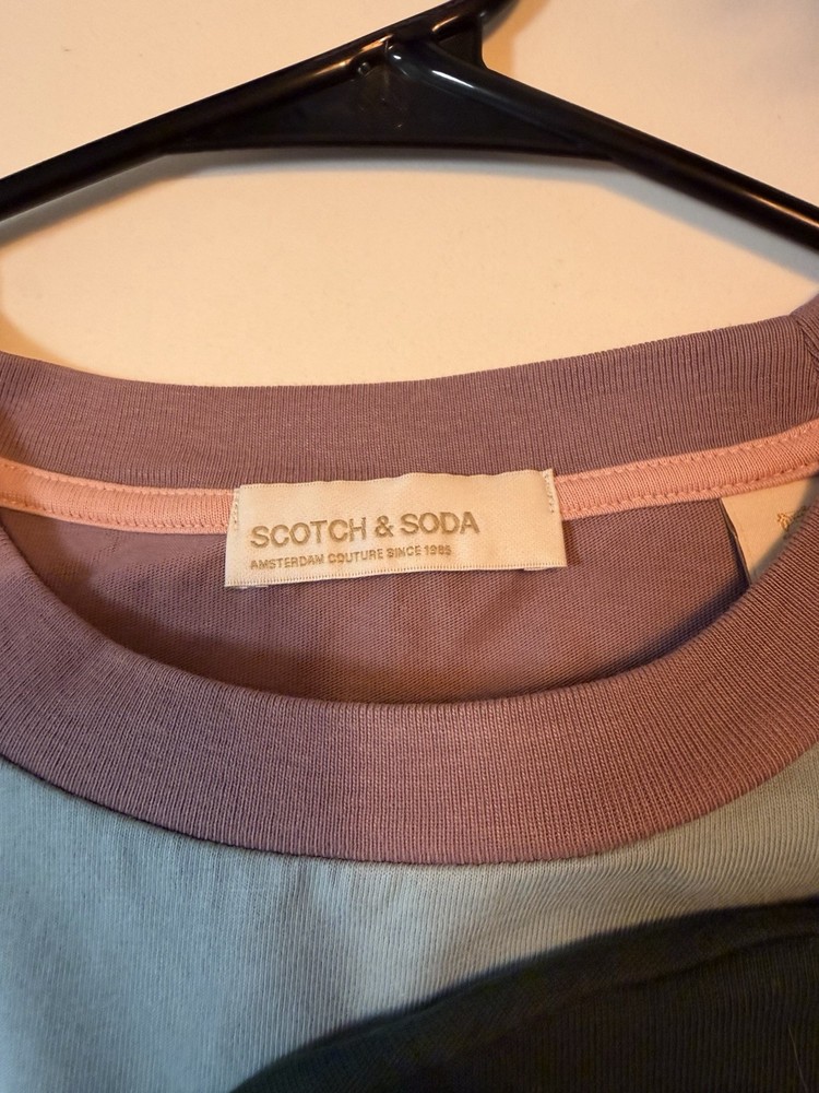 The product is a set of 6 XL men's short sleeve t-shirts by Scotch & Soda. The shirts feature a mixed pattern with a multicolor design, made of cotton knit fabric. They are machine washable and have a crew neck neckline with accent logos. These regular fit t-shirts are suitable for the seasons of summer and spring, making them a versatile addition to any man's wardrobe.