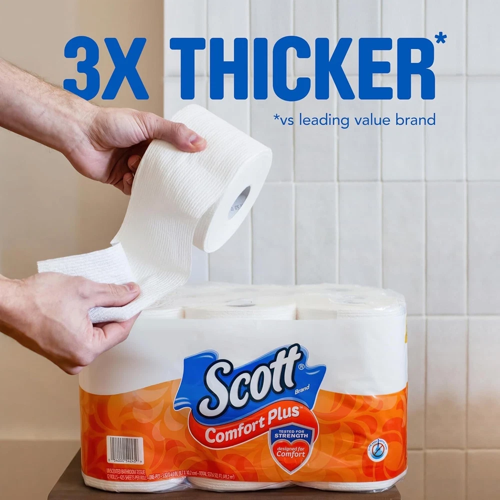 Scott Comfortplus Toilet Paper Bath Septic Safe Unscented Thick Tissue 12 Rolls About This Item: 12 Double Rolls of Scott ComfortPlus Toilet Paper, 231 sheets per roll—packaging may vary from images shown. 3x stronger than the leading bargain brand, Scott ComfortPlus 1-ply toilet paper breaks down 6x faster* and is sewer-safe, septic-safe and clog-free. Free of perfumes or scents, so no need to worry about a. With Scott ComfortPlus Toilet Paper, you get 12 Double Rolls of 231 sheets, so you have plenty of toilet paper for you and your loved ones. 3x stronger than the leading bargain brand, Scott ComfortPlus breaks down 6x faster vs the leading brand one ply and is sewer-safllergies or irritatione, septic-safe and clog-free.