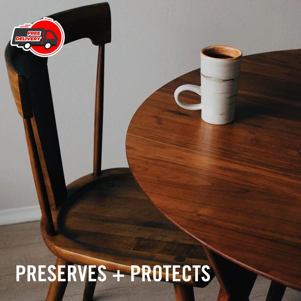 Formulated with conditioning natural oils to hydrate and revitalize your wood surfaces, making them feel like new again Designed to protect against further drying and fading of your wood’s finish Hides nicks and scratches Enhances the natural beauty and wood grain of both finished and unfinished wood Fresh almond scent