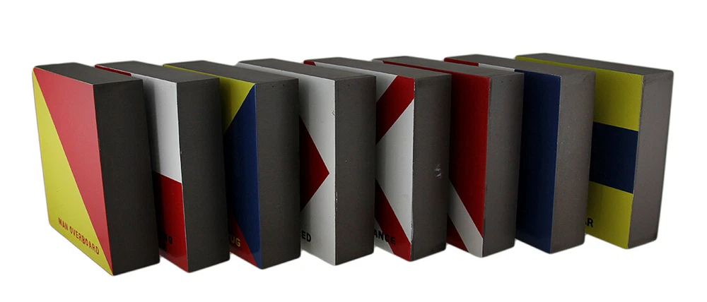 NOTE: This item is being sold as 'Scratch and Dent', at a reduced price DUE TO ALL PLAQUES HAVE SCRATCHES OR MINOR PAINT DEFECTS (DAMAGE MAY VARY PER PRODUCT AVAILABLE), and/or other minor defects. Please see the last image(s) for an example. `Scratch and Dent` items are sold `as is` and all sales are final. Our eBay Store About Us Add to Favorite Sellers Set of 8 Nautical Distress Signal Wall Plaques 6 Inch Squares DUE TO ALL PLAQUES HAVE SCRATCHES OR MINOR PAINT DEFECTS (DAMAGE MAY VARY PER PRODUCT AVAILABLE), and/or other minor defects. Please see the last image(s) for an example. `Scratch and Dent` items are sold `as is` and all sales are final.NOTE: This item is being sold as 'Scratch and Dent', at a reduced price 6 In. Long, 1.75 In. Deep, 6 In. Tall Made of Wood Perfect as a Wall Hanging or Decorative Accent Bold Colors and Patterns are Eye Catching A Great Complement to Nautical, Coastal and Beach Inspired Decor NOTE: This item is being sold as 'Scratch and Dent', at a reduced price DUE TO ALL PLAQUES HAVE SCRATCHES OR MINOR PAINT DEFECTS (DAMAGE MAY VARY PER PRODUCT AVAILABLE), and/or other minor defects. Please see the last image(s) for an example. `Scratch and Dent` items are sold `as is` and all sales are final. Product Details Color Multicolored Height 6 Length 6 Weight 3.75 LB