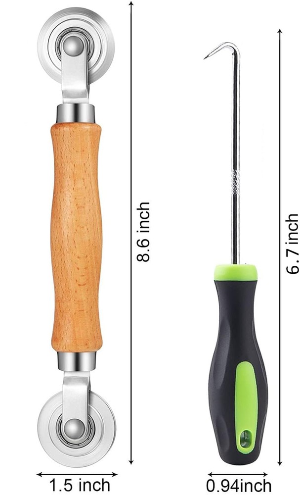 ⭐【QUALITY MATERIALS】- Solid wood handle + double carbon steel bearing metal wheels, heavy beech wood handles are hard and crack-free, thickened and enlarged metal convex and concave double wheels, each of them is finely crafted and durable, suitable for the replacement of aluminum alloy plastic steel doors and windows of any specification. ⭐【SCREEN TOOLS SET】- The screen rolling tool has two different wheels, cams and recessed rollers, which can help you get the job done better and faster. Screen roller is compact and easy to carry,which is can solve your problem well. Every one is meticulously crafted and durable, A good helper for replacing screens at home. ⭐【EASY TO USE】- Installing a screen with a screen rolling tool makes the job much easier. This essential tool is comfortable in the hand and the wheels turn smoothly to roll the screen and spline into the frame. It’s extremely economical and adds great value to big and small screen repair jobs. ⭐【ERGONOMIC HANDLE】- The wood handle has ergonomic design, it is easy to hold. wooden handle and steel convex and concave roller wheels,the steel wheels of our screen rolling tool is smooth The hooks are sharp and the aged battens can be hooked out. ⭐【CONVEX & CONCAVE 】– The combination screen rolling tool has a 1-5/16" x 3/32" convex (round edge) steel roller at one end and a 1-5/16" x 3/32" concave (grooved edge) steel roller at the opposite end.