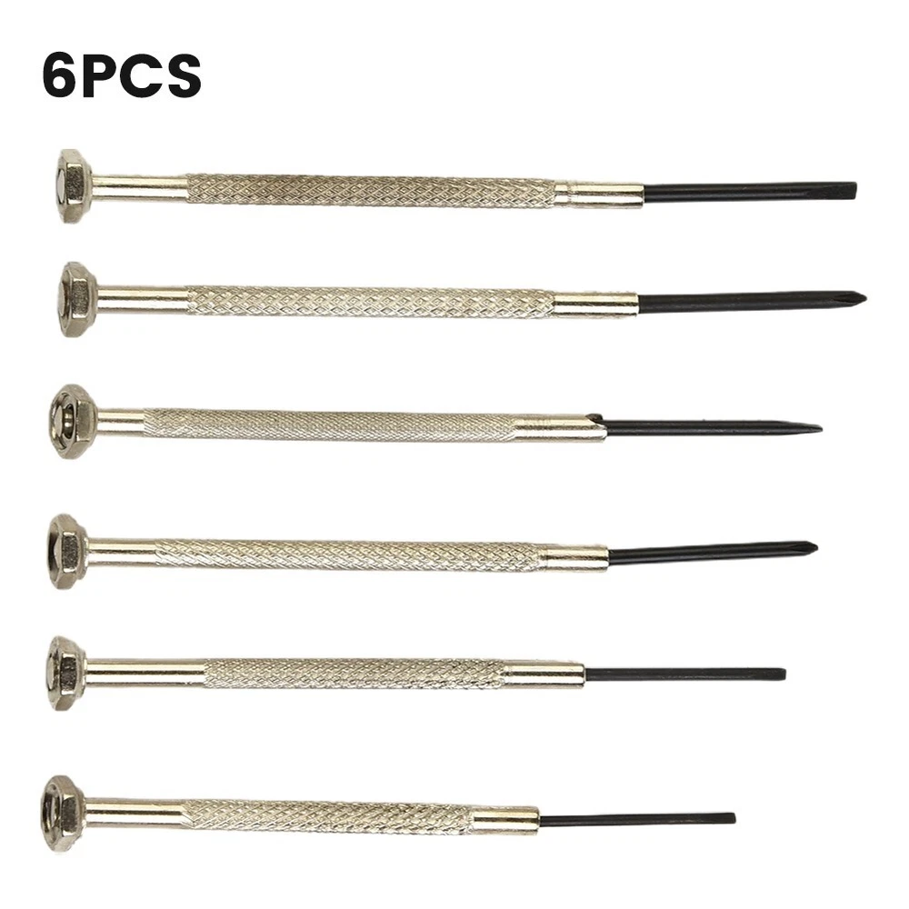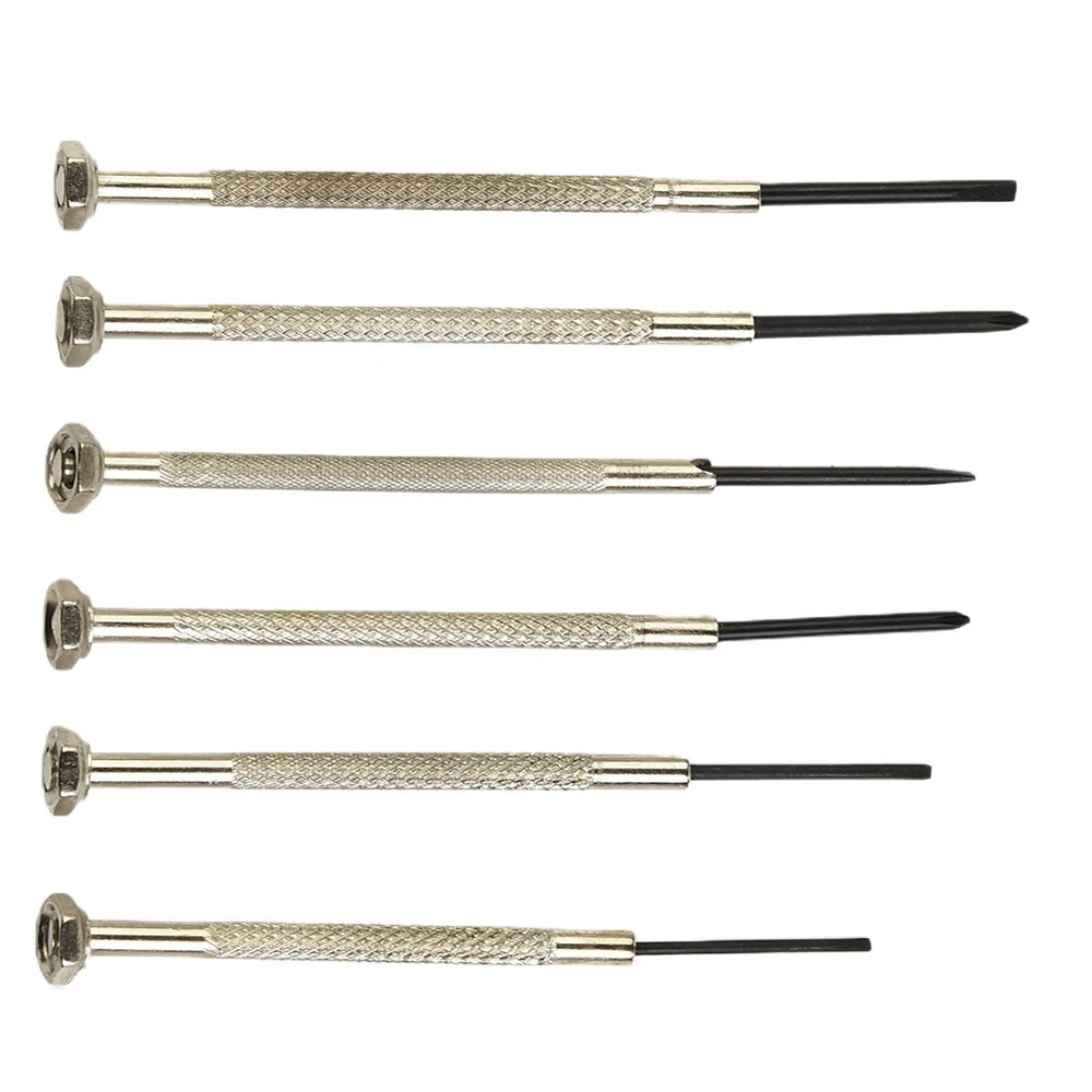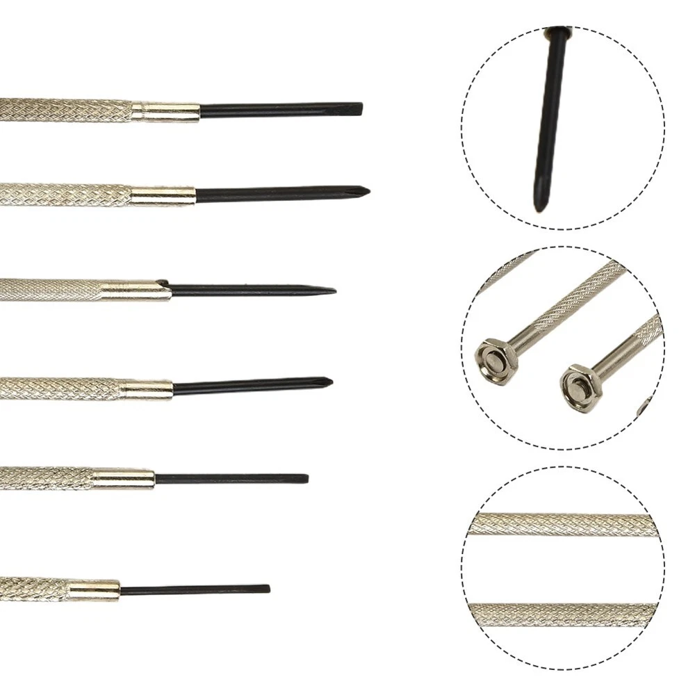 Product Description Features: *High strength chrome vanadium steel shafts reduce wear-outs stripping for longer tool life. *Precision Screwdriver Set is great for the small tasks, such as fixing repairing watches, eyeglasses, jewelry, stereos & electronics or any other small job that requires precision tools. * The screwdrivers have hardened tempered steel blades for durability hexagonal swivel heads for easy handling. *Set includes pieces screwdrivers in a handy storage organization case: Cross screwdrivers (#0, #1); Slotted (1.2, 1.4, 1., 1.8mm). Specifications: Product Name: Precision Screwdriver Set Material: Chrome vanadium alloy steel Color: for Silver, Black, Yellow(As shown) Screwdriver Stype: Cross screwdrivers (#0, #1); Slotted (1.2, 1.4, 1.6, 1.8mm) Suitable for: Watch, Jewelry, Glasses, Electronic,Glasses repair Quantity: 6Pcs/Set Package Included: 6 × Precision Screwdriver Note: 1.Transition: 1cm=10mm=0.39inch. 2. The real color of the item may be slightly different from the pictures shown on website caused by many factors such as brightness of your monitor and light brightness. 3. Please allow slight manual measurement deviation for the data. Payment Payment must be completed within 5 days. If you have any problems about payment, please contact us via ebay message. Delivery details We only ship to confirmed ebay Order addresses. Please comfirm that your Order address is in line with your shipping address. Please kindly note that the c ombined shipping is not provided because the shipping fee is calculated by weight. Also, the each additional item means exactly the the same color and size. It takes about 7 -15 working days to US; about 10-30 working days to other countries. Transit time may be a little delayed because of the bad weather and customs inspection . If you do not receive your item within 30 working days since payment finished, please contact us immediately for further assistance. Contact us We strive for 100% customer satisfaction! Positive Feedback is very important to us. If you have any questions, p lease feel free to contact us via "Ask seller a question" . We will reply your email within 24 working hours.
