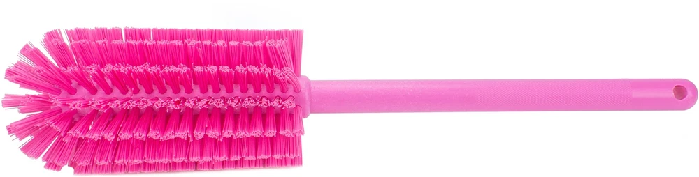 Introducing the 16" Color Coded Bottle Brush - durable polyester bristles, 3" wide head for wide-mouth bottles. Versatile design for pots, pans, dishes, and bottles. Easy to clean, ensuring long-lasting performance. Built with high-quality materials, even for busy kitchens. BPA-free for your safety. Upgrade your cleaning routine with the Color Coded Bottle Brush today! Slim Plastic Handle – Provides easier access to clean inside of jars, bottles and glasses with smaller openings Color-Coded Program – Aligns with (HACCP) practices and promotes an integrated color-coded sanitary maintenance system Versatile design - This bottle brush can be used to clean a variety of kitchen items, including pots, pans, dishes, and bottles. Long-lasting - Constructed with high-quality materials, this bottle brush is built to last, even with frequent use in a busy commercial kitchen. BPA-free construction ensures that it is safe and non-for use in any environment