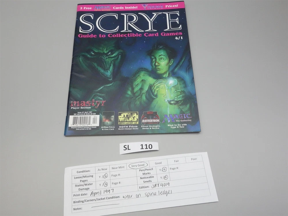 Check out our store for other great deals on a variety of games, books, and hobby supplies! This auction is for the Scrye Issue 4/1 in the condition as pictured. Combined Shipping: Combined shipping charges for this item are $2 within the US. For the full discount on shipping and handling please wait for an invoice that contains all items purchased. We have to send invoices by hand, as eBay does not correctly calculate combined shipping charges. We mail all items within one business day after payment is received, and all items are insured. Please contact us immediately if there is any damage incurred during shipment. International Buyers – Please Note: Import duties, taxes, and charges are not included in the item price or shipping cost. These charges are the buyer's responsibility. Please check with your country's customs office to determine what these additional costs will be prior to bidding or buying.