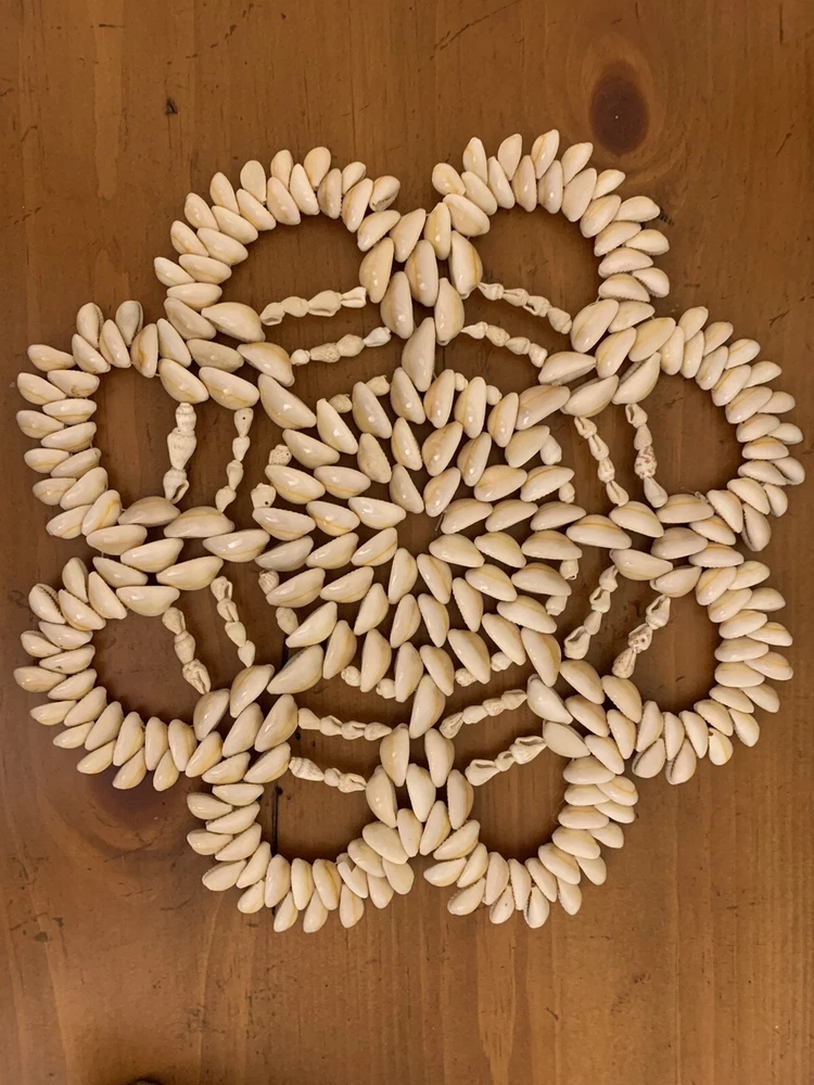 Country/Region of Manufacture:UnknownType:TrivetBrand:UnbrandedColor:BeigeHandle Material:ShellHandmade:YesUPC:Does Not ApplySet Includes:1 trivetPattern:ShellsFood Compatibility:Hot PlateOriginal/Reproduction:OriginalNumber of Items in Set:1Components Included:1 trivetgtin13:Does Not ApplyStyle:NauticalMPN:Does Not ApplyShape:RoundOccasion:All OccasionsTime Period Manufactured:1990-1999Material:Shells