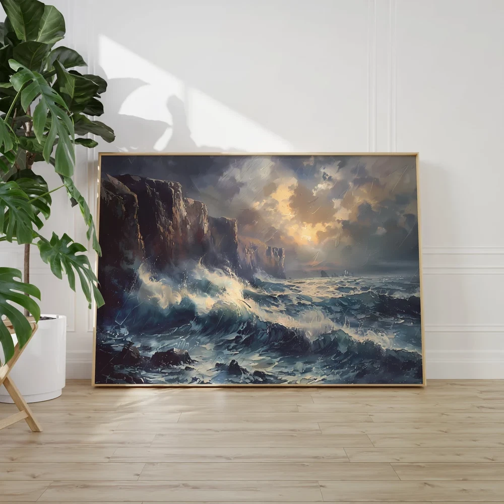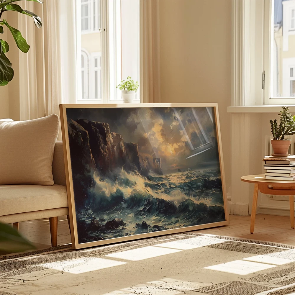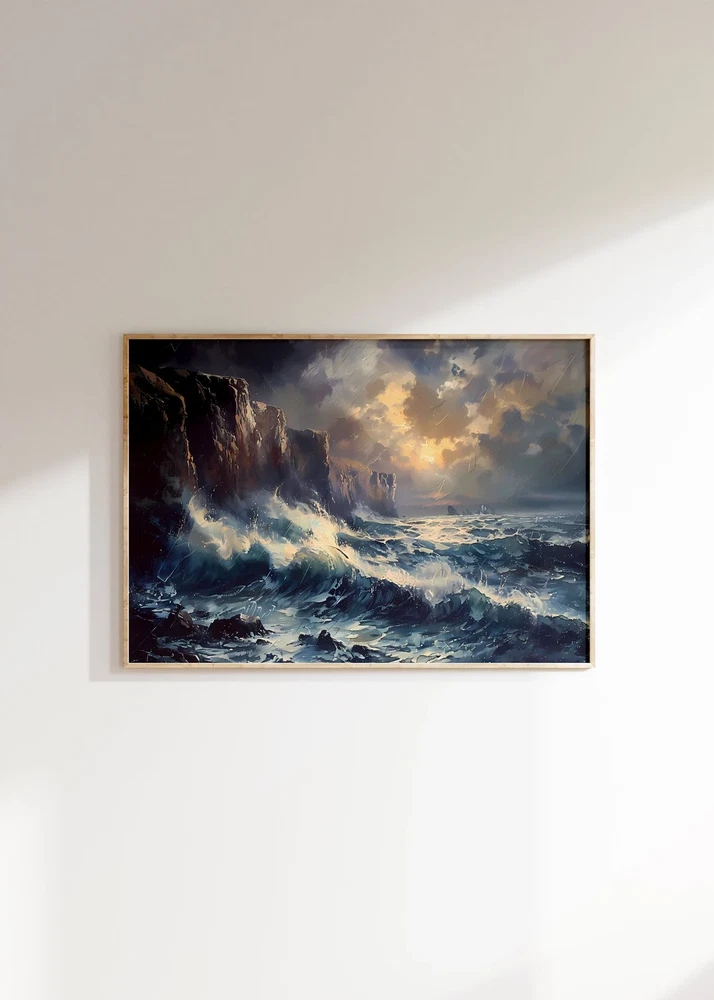 Sea Waves Crashing to Rock in Sea Paint Poster Premium Quality Choose your Size