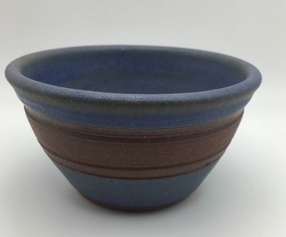 Seagrove North Carolina Pottery Bowl Handmade Vintage Original Pretty blue mini bowl with brown band around middle and brown bottom Looks like a light green almost glittery glazing around upper outside of bowl and inside bottom too Measures 4" wide x 2 1/2" tall and 2" deep Unsigned Great condition Pictures are of the exact item you will receive. Zoom in for details. Please message with any questions. Carefully packed and shipped Thank you for shopping with Daisy! Here's a Link to MY STORE for more great vintage, eclectic collectibles and estate treasures: https://www.ebay.com/str/daisysdishes