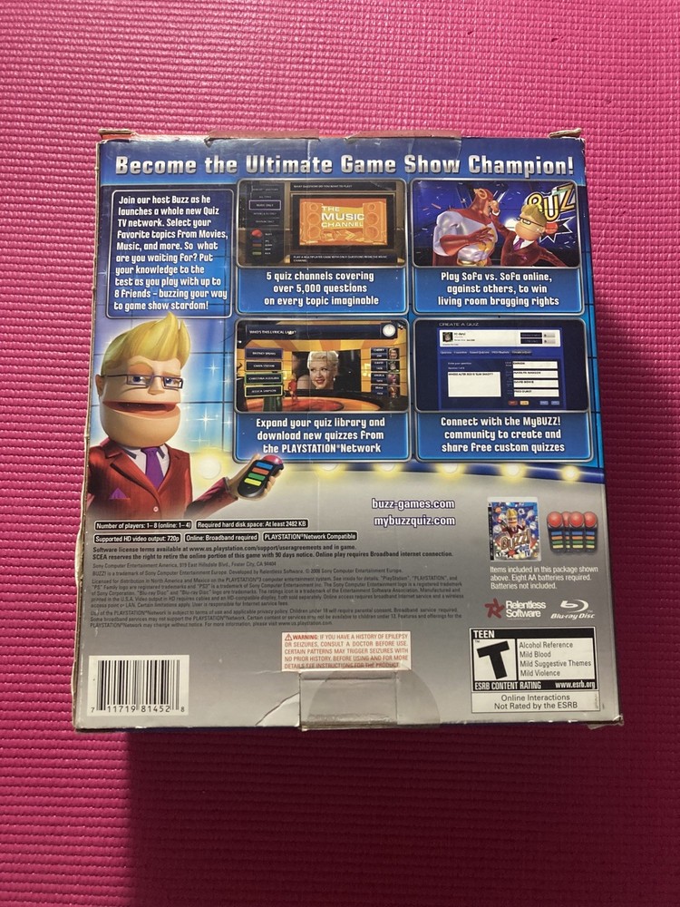 The Sealed Buzz Quiz TV Bundle for the PS3 includes wireless buzzers for a fun and interactive family party game. With a focus on trivia and quick thinking, players can enjoy competing against each other in this popular Sony PlayStation 3 game. The NTSC-U/C region code ensures compatibility with consoles in the United States and Canada, providing hours of entertainment for players of all ages.