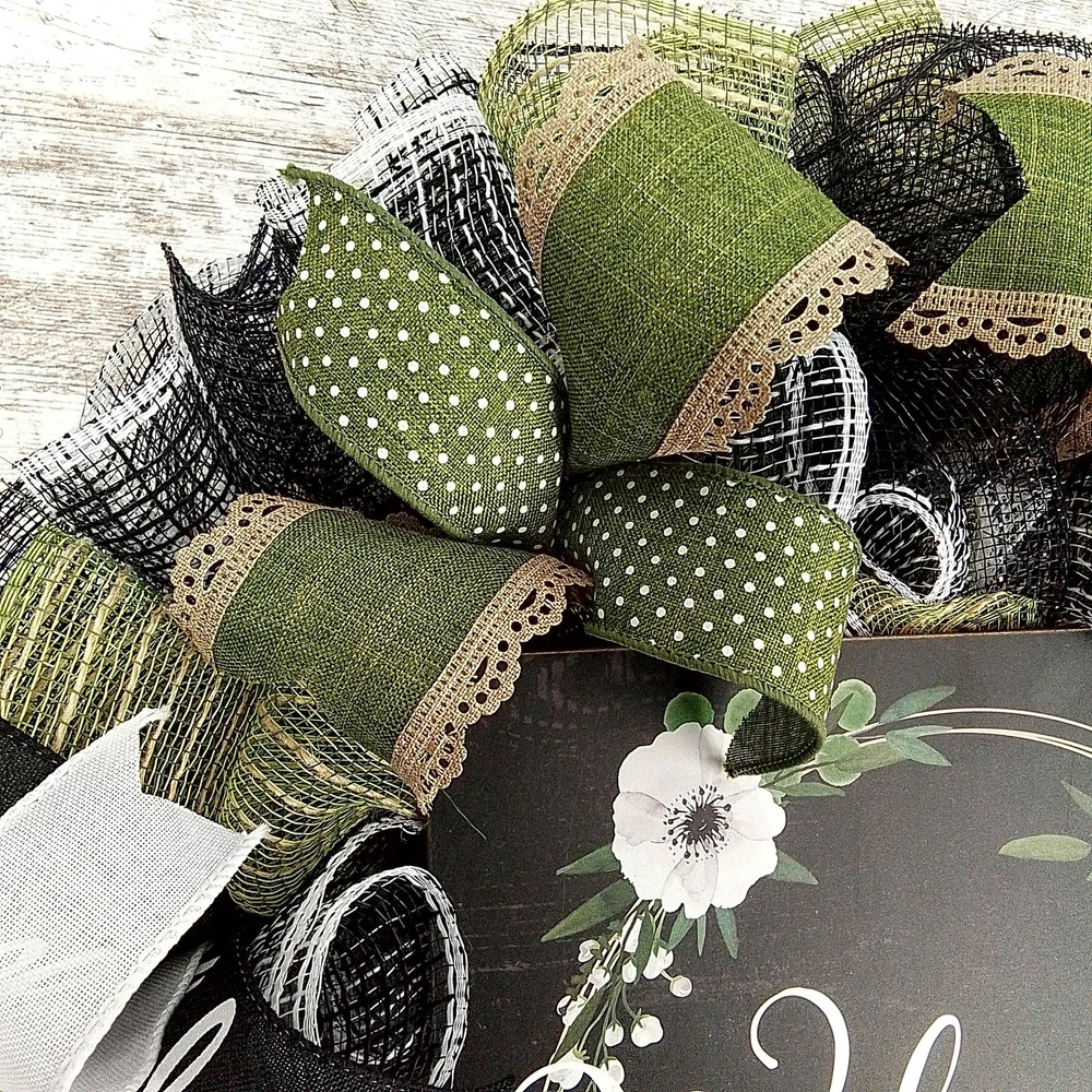 This welcome wreath will make a wonderful addition to your indoor or outdoor home décor. Use it for your own decor, or a gift for someone special. Thank you so much for visiting my shop and for considering pieces that allow my passion to make your home even more beautiful. Please message me with any questions before purchasing. This wreath measures approximately 24 inches round and approximately 5" deep This wreath is ready to ship and is made with black, jute and white mesh and accented with coordinating ribbons to showcase the wooden Welcome sign in the center (that is removable) Want something more custom or have questions? Send me a message...the backbone of my business is custom creations! Purchase with confidence in a seller with excellent reviews and over 15,000 sales between all selling venues. Indoor and outdoor pieces but my wreaths do appreciate a little shelter from the elements to stay in pristine condition.