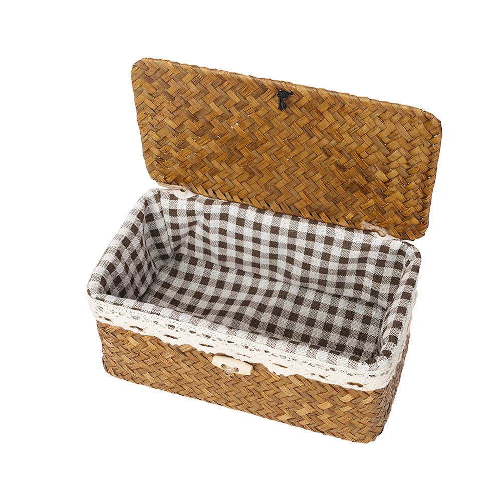 Feature: As a natural green aquatic plant, seagrass has a smooth and tough surface, which is very suitable for weaving materials. The use of folk tradition of hand-weaving the whole process, manual skills Retro, stylish and sturdy, is one of the most popular modern low-carbon environmentally friendly products. Wide range of applications, can be used as decoration and storage baskets. Specification: Item: Seagrass Basket Material: Seagrass + Cloth Color: Nature Brown, Nature Beige Size: S:23*13*9CM M:26*16*10CM Process: Handmade Package included: 1 Pcs Seagrass Storage Box Note: 1.The color of natural seagrass materials cannot be unified, and there will be some color differences. For example, the color of seagrass with different growth degrees will be different. 2. Please allow 1-2cm size errors due to pure manual production and measurement. On Dec 2, 2024 at 20:03:31 PST, seller added the following information: