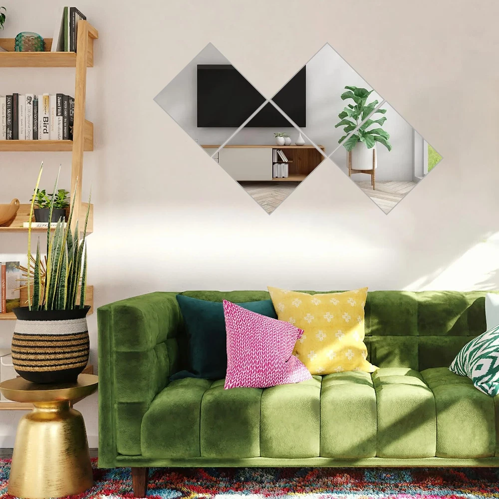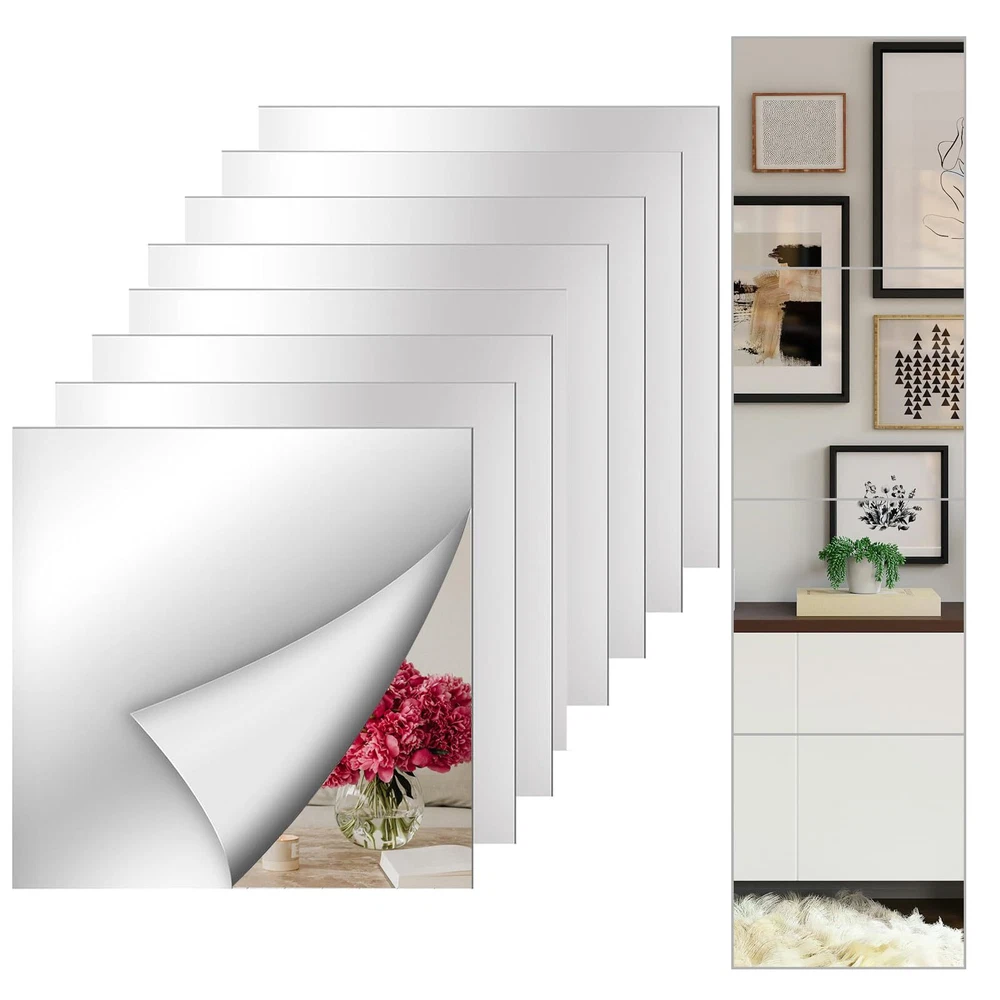 【Acrylic Material】:The mirror is made of acrylic material,with a smooth surface and good texture,which can avoid scratches and is safer than ordinary glass mirrors. 【Reflective Effect】:Our acrylic mirror has a reflective effect, which can be used for exquisite decoration. Reflective surfaces can make the space look larger and brighter.Use mirror stickers on smooth surfaces, the flatter the wall, the better the reflective effect. 【Easy To Install】:Just tear off the white tape on the back and stick it where it needs to be,without tools,no need to punch & no damage walls.It can be easily installed on smooth walls,latex paint walls or wooden doors.but don't use for uneven wall.Each mirror is covered with a protective film to avoid scratches, just peel it off to get a high-definition mirror. 【Safe and Unbreakable Mirror】: The acrylic mirror tiles is not glass,can be bent freely,unbreakable and safe.You can cut the mirror plate into any shape to DIY decorate the wall as you like.Don't worry about hurting the . 【Wide Applications】: Flexible mirror sheets stickers mirrors can be used as full-length mirrors,wall mirrors,fitness mirrors,yoga mirrors.Suitable for bathrooms,bedrooms,living rooms,dressing rooms,doors,offices,hotels and any place where mirrors are needed.