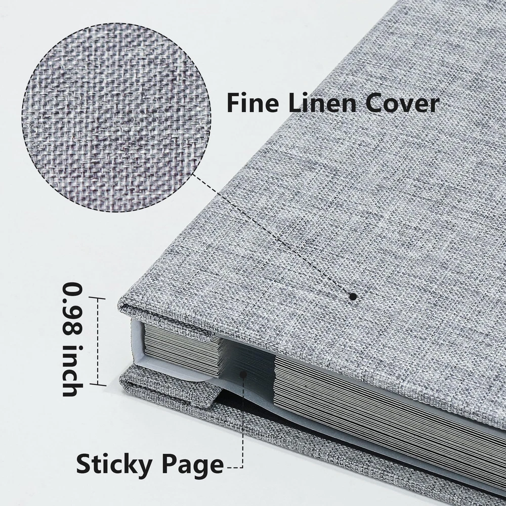 Size Specifications: The photo album has external dimensions of 9.84" x 9.06".With 20 sheets or 40 pages, it can easily store up to 80 4x6 inches of photos or 40 5x7 inches of pictures. Acid-free & PVC-free: With its high-quality material, the scrapbook album protects your photos, allowing your precious memories to remain intact and well-preserved for an extended duration. Self-adhesive Design: The paper is versatile for many sizes of photos. You can use the pages repeatedly and easily access your precious memories. The inner page film is easy to open or close to facilitate your DIY photo album journey. Linen Cover: This album book features a premium linen cover, showcasing a vintage and exquisite style. The Linen cover helps extend the lifespan of the photobook, protecting your valuable pictures for years to come. There is a window where you can custom and replace photos at will. Perfect Gift: Whether for a wedding, travel, school, birthday or any special occasion, our albums offer a thoughtful and unique keepsake to express your love and appreciation.