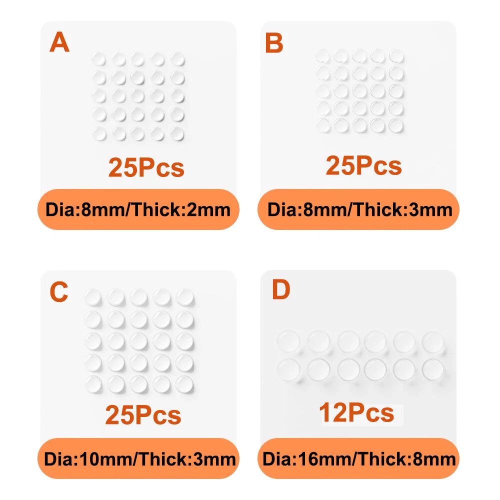 Self Adhesive Soft Close Rubber Furniture Cupboard Door Bumper Pads Buffer Stops Self Adhesive Soft Close Rubber Furniture Cupboard Door Bumper Pads Buffer Stops ⟨Product Information⟩ ► Product Name: Bumper ► Material: Silicone ► Color: Clear ► Diameter: 8-30mm ► Thick: 2-8mm Features : - These Furniture Bumpers Are Made Of High Quality Silicone, Which Not Only Has The Function Of Protecting Furniture, But Also Plays A Decorative Role To Make Furniture More Beautiful. It Has Excellent Elasticity And Softness, Which Can Effectively Absorb The Impact And Reduce The Damage Caused By Collision. Anti-Slip, High Temperature, Low Temperature And Corrosion Resistant, With Self-Adhesive Adhesive On The Back, When Using, Just Tear Off The Back To Paste, Easy And Fast Installation. Application: - These Furniture Bumper Strips Are Widely Used To Protect The Corners And Bottoms Of Furniture Such As Tables, Chairs, Cabinets, Doors And Other Furniture From Bumps And Scratches, Protect Furniture And Floors. Used On The Bottom And Corners Of Refrigerators, Washing Machines, Microwave Ovens And Other Household Appliances To Prevent Sliding And Collision. Prevent Sliding And Collision, Reduce Noise And Vibration. Used On The Edges And Handles Of Doors And Windows To Prevent Collision And Noise When Closing, Protect Doors, Windows And Walls. About us Payment Contact us Guarantee About item About us ● Hello Dear Customer: we have been engaged in online sales of hardware fasteners for more than 10 years, if you need a large number of or customized hardware products, please contact us, we can provide good prices and better service. ● All products in our store are elaborately made. Please feel free to buy. ● If you are satisfied with the products, I expect you can leave us positive feedback. ● If you have any problems or be not satisfied with them, please feel free to contact us, we will reply to you within 24 hours. Payment ● We accept multiple payment methods supported by the platform. ● We only accept your Ebay Address, Please Make sure it's 100% right. ● The items you ordered will be shipped out in 2 business days by Air Mail when your payment is clear. Contact us ● We care about our valued buyers, if you have any questions, our Customer Service staff will be very glad to help you. We try our best to reply to your emails as soon as possible, however, due to the high volume of daily incoming emails and time zone difference, we may not be able to reply to your emails immediately. Please allow 12 business hours for us to respond. Guarantee ● Good quality. Buy with confidence! ● If you are not satisfied when you receive your item, please return it within 7 days for a replacement or money back. Please contact me before you return it. ● Full refund after we receive our original item, Note: Return shipping is to be paid by the Buyer. ● We maintain high standards of excellence and strive for 100% customer satisfaction! Feedback is very important to us. We request that you contact us immediately before you give us neutral or negative feedback, so that we can satisfactorily address your concerns. About item ● For the functional products in our shop, we make sure that the functions are the same as the description. ● About the product colour:Because of the different light and environment when the product is photographed, In a few instances the colour of the product may have a little colour difference with the actual colour of the product, I hope you can understand. On Oct 30, 2024 at 13:08:10 PDT, seller added the following information:
